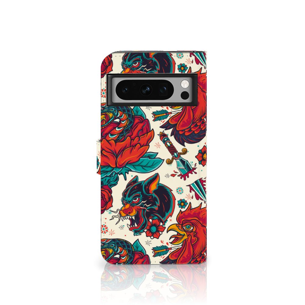 Ben je op zoek naar een stoer hoesje voor je Google Pixel 8 Pro? Dan is dit hoesje in old skool stijl zeker iets voor jou! Het heeft wel iets weg van een tatoeage, vind je ook niet? Dit old skool vintage design wordt geprint op een Telefoonhoesje met foto waarin je drie pasjes kwijt kunt. Het hoesje wordt afgesloten met een sluit lipje, waardoor jouw telefoon altijd goed beschermd is. Bescherm je Google Pixel 8 Pro vandaag nog met dit stoere old skool design hoesje!