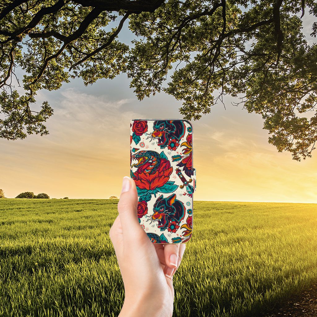 Ben je op zoek naar een stoer hoesje voor je iPhone 7 | 8 | SE (2020) | SE (2022)? Dan is dit hoesje in old skool stijl zeker iets voor jou! Het heeft wel iets weg van een tatoeage, vind je ook niet? Dit old skool vintage design wordt geprint op een Telefoonhoesje met foto waarin je drie pasjes kwijt kunt. Het hoesje wordt afgesloten met een sluit lipje, waardoor jouw telefoon altijd goed beschermd is. Bescherm je iPhone 7 | 8 | SE (2020) | SE (2022) vandaag nog met dit stoere old skool design hoesje!