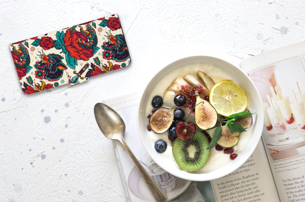 Ben je op zoek naar een stoer hoesje voor je Nokia G42? Dan is dit hoesje in old skool stijl zeker iets voor jou! Het heeft wel iets weg van een tatoeage, vind je ook niet? Dit old skool vintage design wordt geprint op een Telefoonhoesje met foto waarin je drie pasjes kwijt kunt. Het hoesje wordt afgesloten met een sluit lipje, waardoor jouw telefoon altijd goed beschermd is. Bescherm je Nokia G42 vandaag nog met dit stoere old skool design hoesje!