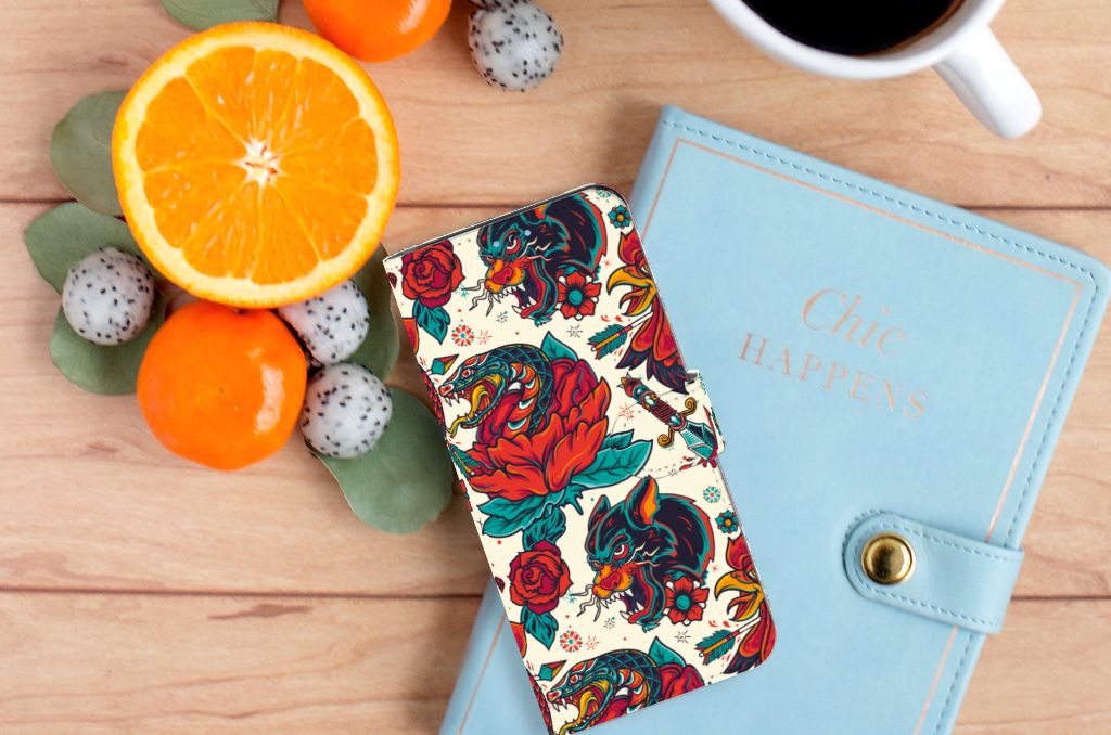 Ben je op zoek naar een stoer hoesje voor je OPPO Reno8 Pro? Dan is dit hoesje in old skool stijl zeker iets voor jou! Het heeft wel iets weg van een tatoeage, vind je ook niet? Dit old skool vintage design wordt geprint op een Telefoonhoesje met foto waarin je drie pasjes kwijt kunt. Het hoesje wordt afgesloten met een sluit lipje, waardoor jouw telefoon altijd goed beschermd is. Bescherm je OPPO Reno8 Pro vandaag nog met dit stoere old skool design hoesje!