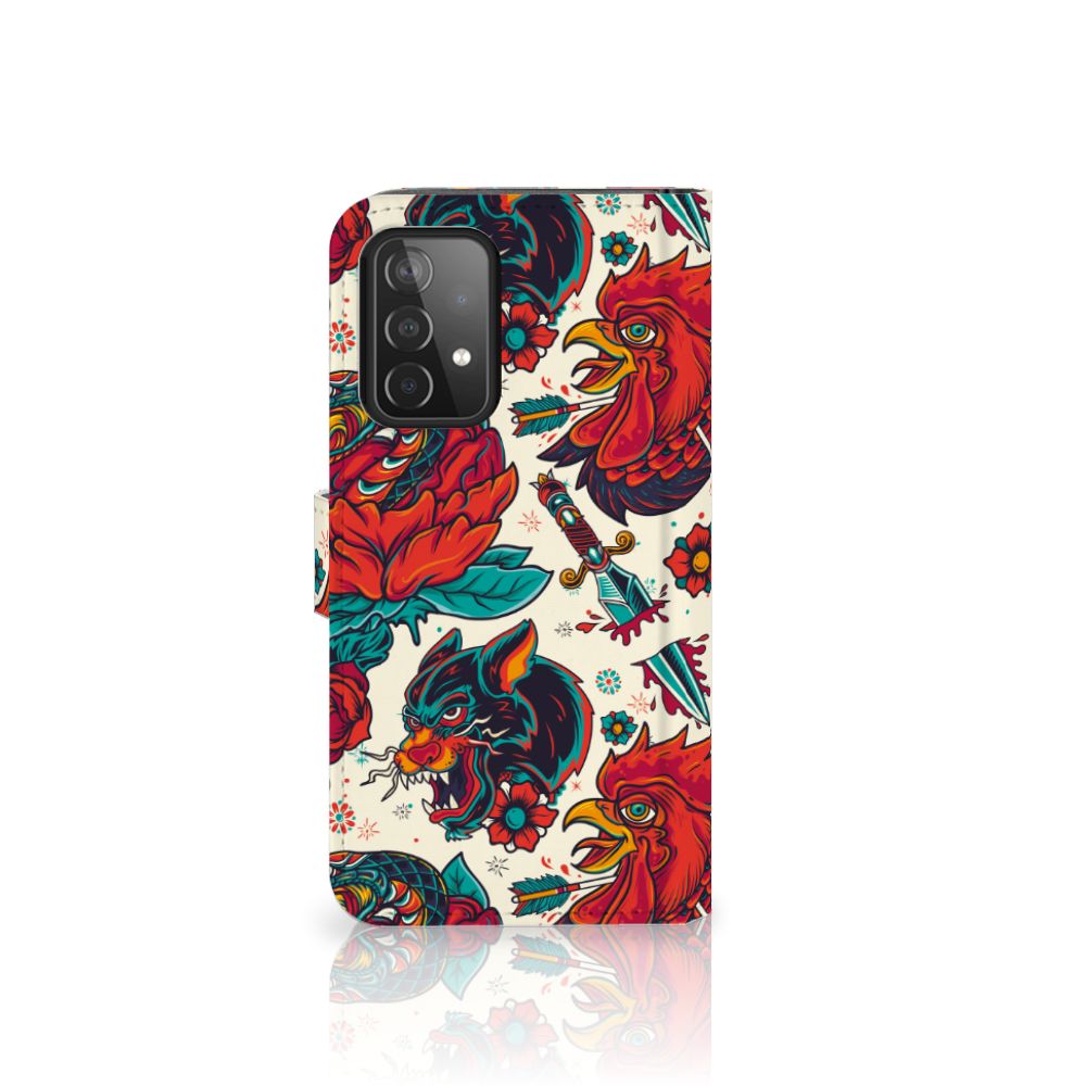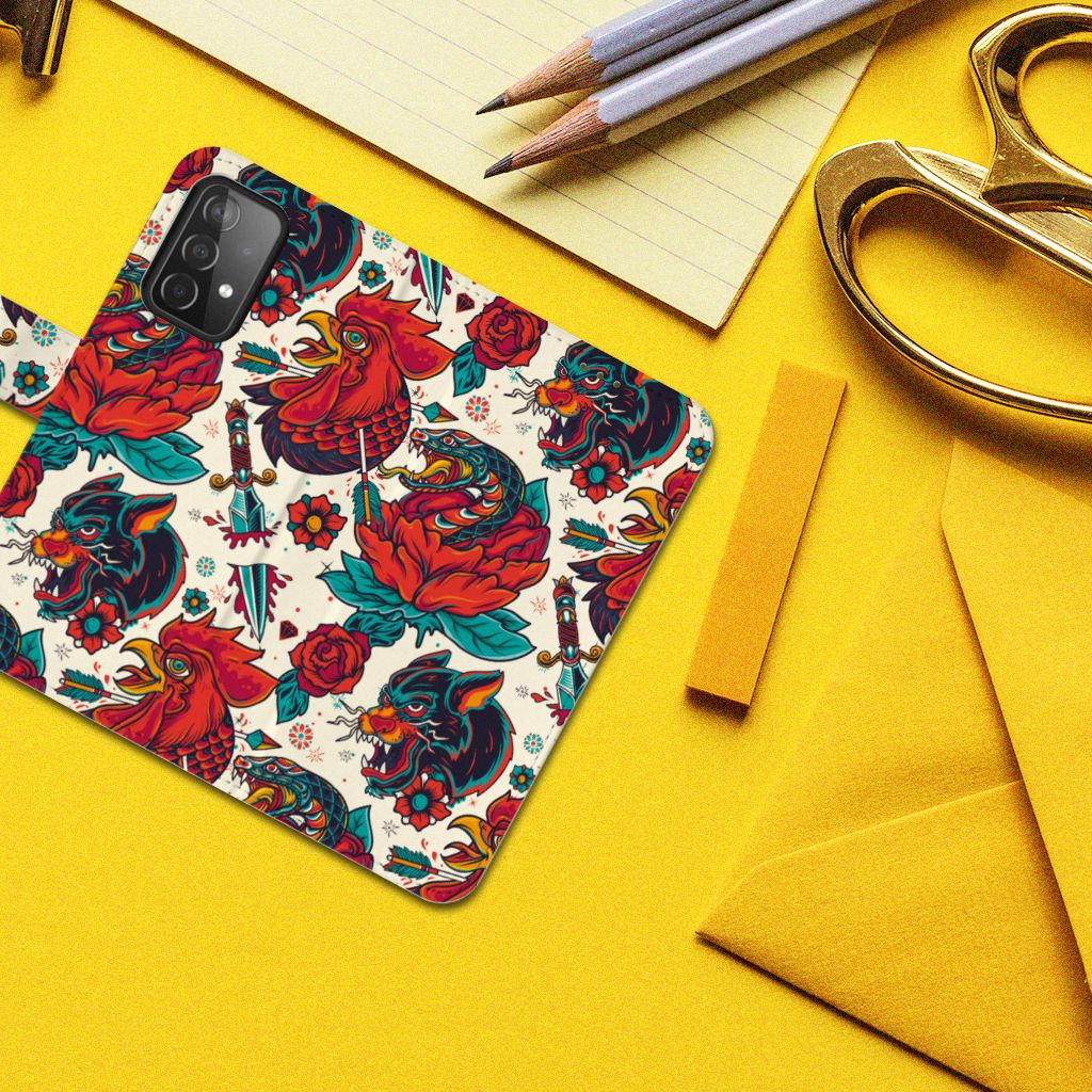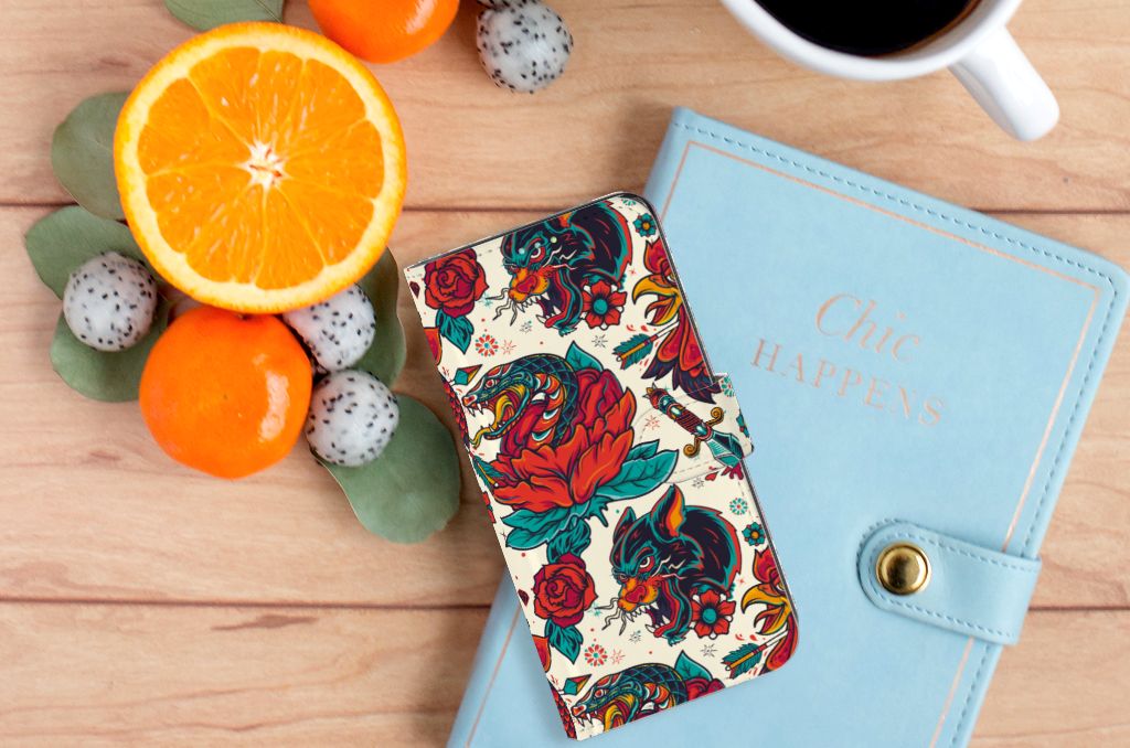 Ben je op zoek naar een stoer hoesje voor je Samsung Galaxy A52? Dan is dit hoesje in old skool stijl zeker iets voor jou! Het heeft wel iets weg van een tatoeage, vind je ook niet? Dit old skool vintage design wordt geprint op een Telefoonhoesje met foto waarin je drie pasjes kwijt kunt. Het hoesje wordt afgesloten met een sluit lipje, waardoor jouw telefoon altijd goed beschermd is. Bescherm je Samsung Galaxy A52 vandaag nog met dit stoere old skool design hoesje!