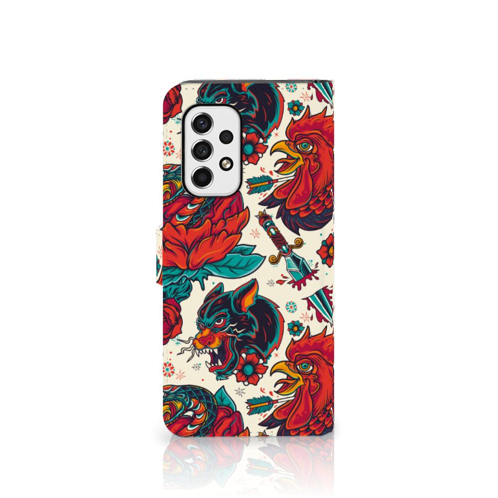 Ben je op zoek naar een stoer hoesje voor je Samsung Galaxy A53? Dan is dit hoesje in old skool stijl zeker iets voor jou! Het heeft wel iets weg van een tatoeage, vind je ook niet? Dit old skool vintage design wordt geprint op een Telefoonhoesje met foto waarin je drie pasjes kwijt kunt. Het hoesje wordt afgesloten met een sluit lipje, waardoor jouw telefoon altijd goed beschermd is. Bescherm je Samsung Galaxy A53 vandaag nog met dit stoere old skool design hoesje!