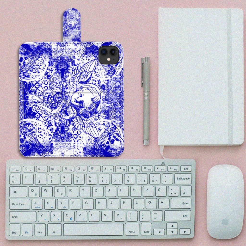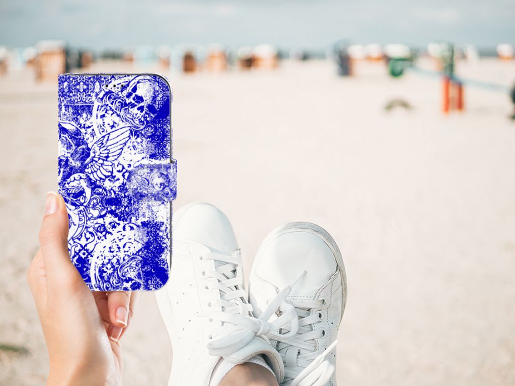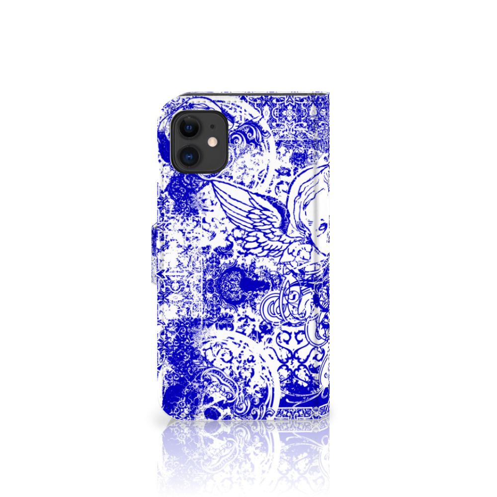 Dit ietwat duistere blauwe patroon tref je vaak aan op een bandana. Een bandana wordt om het hoofd of de hals gedragen. Een bandana is ideaal als je op de racefiets, motor of de brommer zit en jezelf wilt beschermen tegen wind, opwaaiend stof of fijn zand. Leden van motorclubs dragen dit soort bandana’s dan ook graag. Wil je jouw Apple iPhone 11 optimaal beschermen tegen opwaaiend stof, zand of andere bedreigingen, dan is dit design hoesje met Angel Skull Blue design een zeer goede keus. Het design staat op een Telefoonhoesje met Naam. Dit smartphonehoesje beschermt jouw telefoon aan alle zijden en beschikt over verschillende opbergvakjes voor pasjes en briefgeld. De case sluit perfect af met het lipje aan de buitenkant. De houder aan de binnenzijde is van TPU. Alle zijden van het hoesje worden bedrukt, inclusief het lipje