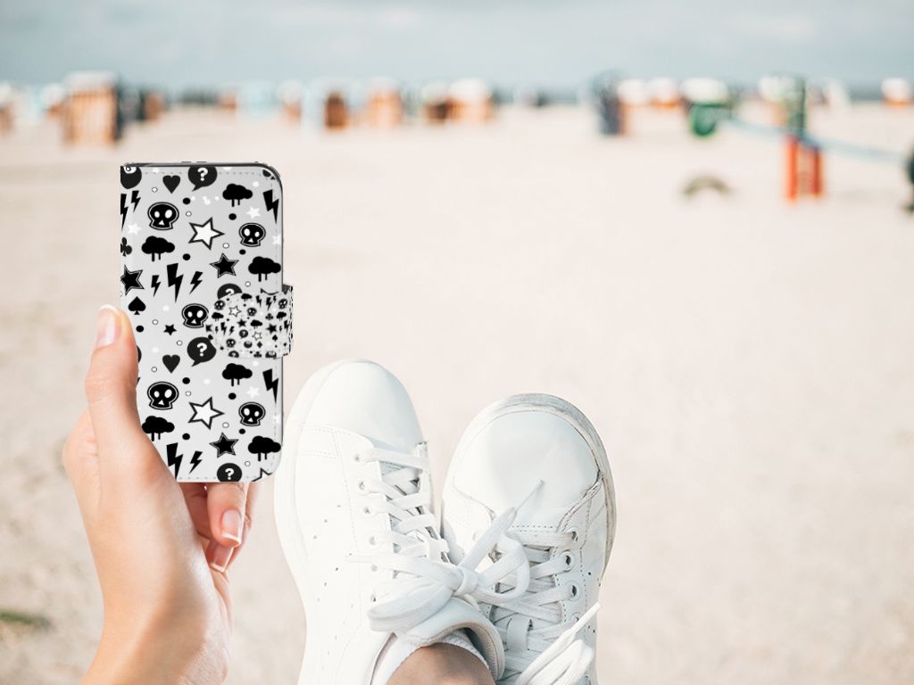 Bliksemflitsen, donderwolken, sterren en biljartballen vliegen op je af als je dit Apple iPhone 5 | 5s | SE Telefoonhoesje met Naam koopt. Het bijzondere Silver Punk design is van onze eigen ontwerper en vind je in geen enkel andere winkel of webshop. Ben je fan van dit soort stoere en opvallende hoesjes, dan kun je je geluk niet op als je ons assortiment smartphone accessoires bekijkt. Het design op dit zeer populaire boekhoesje bedrukken we zelf in ons eigen magazijn. De case heeft verschillende vakjes en is aan alle zijden bedrukt met bliksemflitsen, donderwolken, sterren en biljartballen. Ook het magnetisch lipje aan de buitenkant heeft een print. De houder binnen in het hoesje is van TPU, de buitenzijde van PU-leer. Zelfs doodshoofdjes zie je voorbijkomen in het design. Om maar aan te geven dat je met dit zilveren hoesje een krachtige smartphone accessoire te pakken hebt.