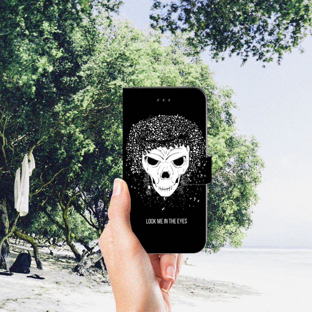 Ben je op zoek naar een uniek telefoonhoesje voor je Apple iPhone 7 Plus | 8 Plus? Dan ben je bij B2C Telecom aan het juiste adres! Speciaal voor jou hebben we dit prachtige Skull Hair design in onze collectie hoesjes opgenomen. Het design wordt bedrukt op een Telefoonhoesje met Naam en heeft twee vakjes voor pasjes en een groter vakje voor briefgeld. Alle zijdes van het hoesje worden bedrukt, hoe uniek is dat? Het hoesje wordt afgesloten met een sluit lipje aan de voorkant. Wil je dit design hoesje nog iets extra's geven? Voeg dan gratis je naam of een quote toe! Is dit design hoesje toch niet helemaal wat je zocht? Ontwerp dan zelf een hoesje in ons ontwerpprogramma.