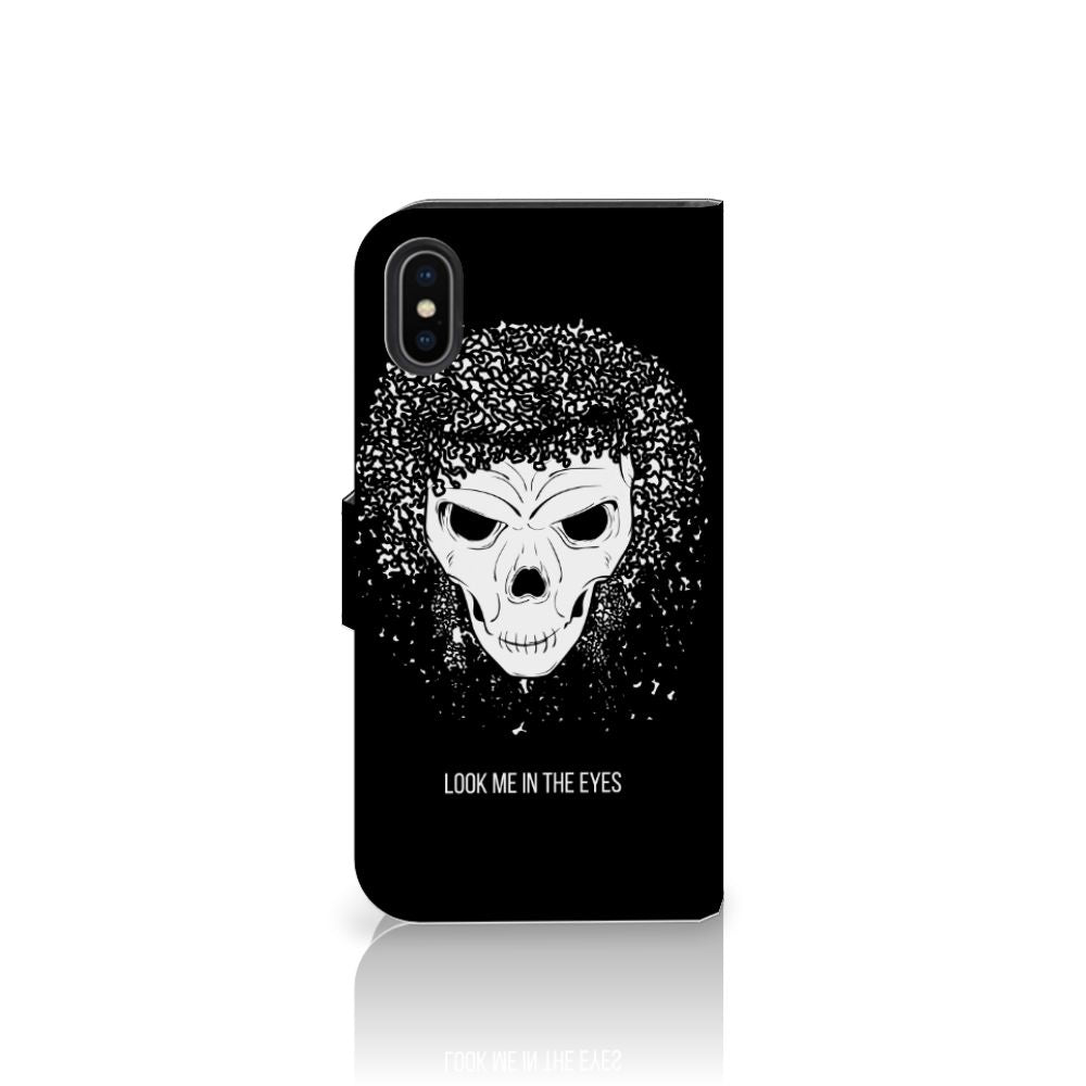 Ben je op zoek naar een uniek telefoonhoesje voor je Apple iPhone X | Xs? Dan ben je bij B2C Telecom aan het juiste adres! Speciaal voor jou hebben we dit prachtige Skull Hair design in onze collectie hoesjes opgenomen. Het design wordt bedrukt op een Telefoonhoesje met Naam en heeft twee vakjes voor pasjes en een groter vakje voor briefgeld. Alle zijdes van het hoesje worden bedrukt, hoe uniek is dat? Het hoesje wordt afgesloten met een sluit lipje aan de voorkant. Wil je dit design hoesje nog iets extra's geven? Voeg dan gratis je naam of een quote toe! Is dit design hoesje toch niet helemaal wat je zocht? Ontwerp dan zelf een hoesje in ons ontwerpprogramma.