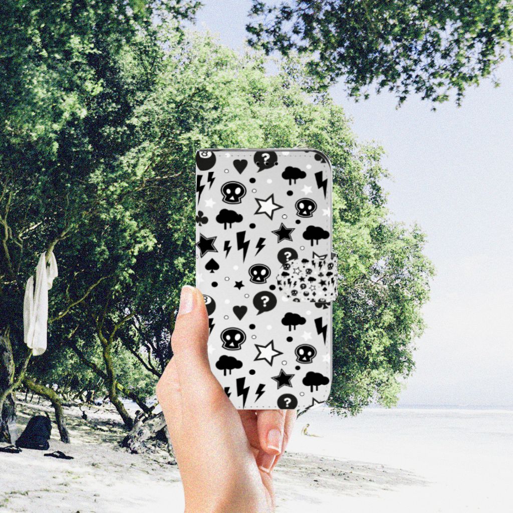 Bliksemflitsen, donderwolken, sterren en biljartballen vliegen op je af als je dit Apple iPhone Xr Telefoonhoesje met Naam koopt. Het bijzondere Silver Punk design is van onze eigen ontwerper en vind je in geen enkel andere winkel of webshop. Ben je fan van dit soort stoere en opvallende hoesjes, dan kun je je geluk niet op als je ons assortiment smartphone accessoires bekijkt. Het design op dit zeer populaire boekhoesje bedrukken we zelf in ons eigen magazijn. De case heeft verschillende vakjes en is aan alle zijden bedrukt met bliksemflitsen, donderwolken, sterren en biljartballen. Ook het magnetisch lipje aan de buitenkant heeft een print. De houder binnen in het hoesje is van TPU, de buitenzijde van PU-leer. Zelfs doodshoofdjes zie je voorbijkomen in het design. Om maar aan te geven dat je met dit zilveren hoesje een krachtige smartphone accessoire te pakken hebt.