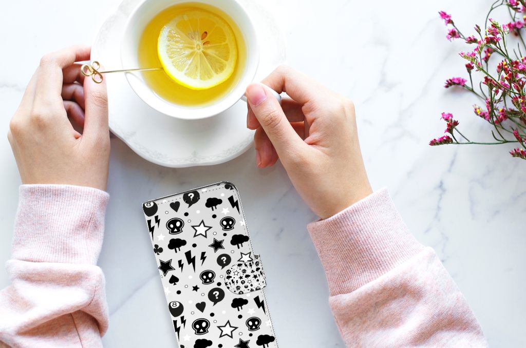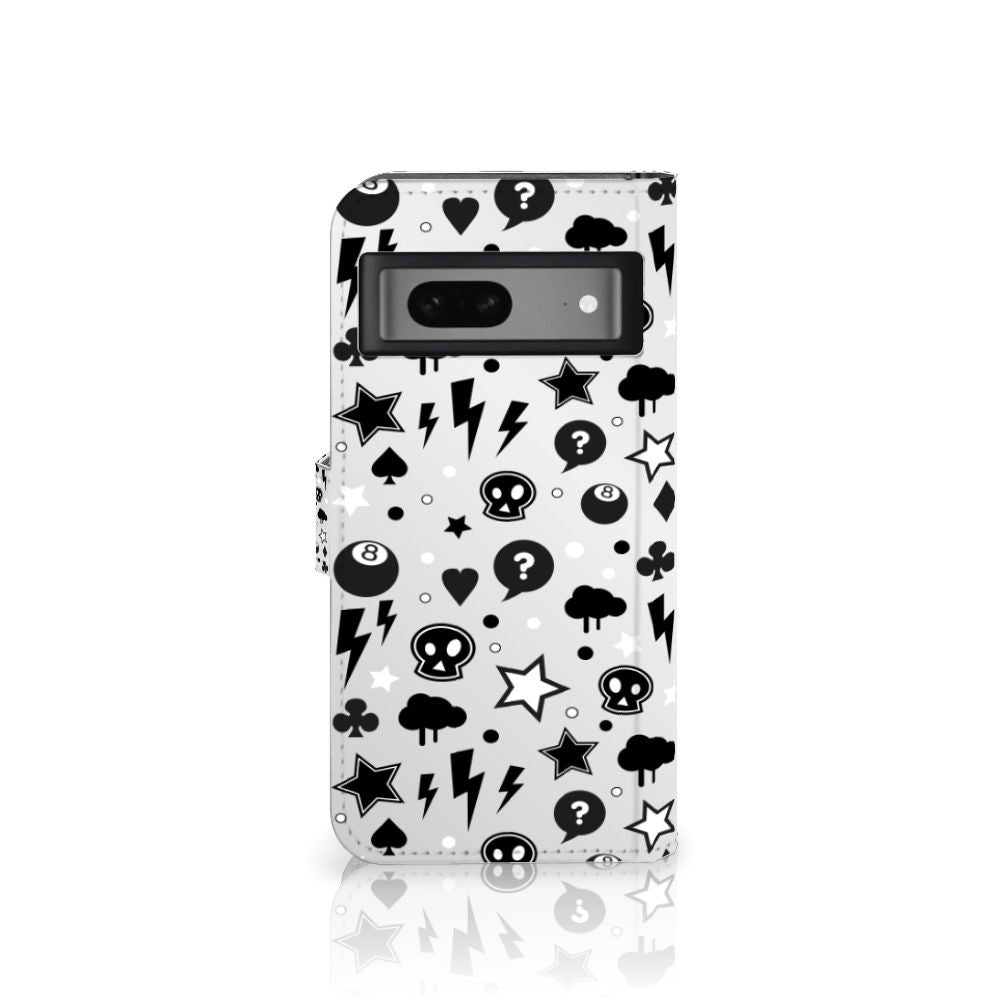 Bliksemflitsen, donderwolken, sterren en biljartballen vliegen op je af als je dit Google Pixel 7 Telefoonhoesje met Naam koopt. Het bijzondere Silver Punk design is van onze eigen ontwerper en vind je in geen enkel andere winkel of webshop. Ben je fan van dit soort stoere en opvallende hoesjes, dan kun je je geluk niet op als je ons assortiment smartphone accessoires bekijkt. Het design op dit zeer populaire boekhoesje bedrukken we zelf in ons eigen magazijn. De case heeft verschillende vakjes en is aan alle zijden bedrukt met bliksemflitsen, donderwolken, sterren en biljartballen. Ook het magnetisch lipje aan de buitenkant heeft een print. De houder binnen in het hoesje is van TPU, de buitenzijde van PU-leer. Zelfs doodshoofdjes zie je voorbijkomen in het design. Om maar aan te geven dat je met dit zilveren hoesje een krachtige smartphone accessoire te pakken hebt.