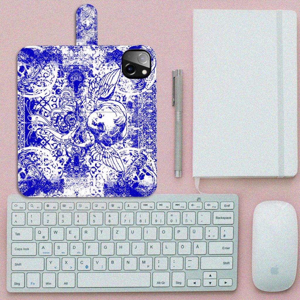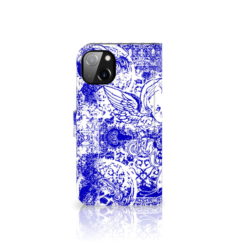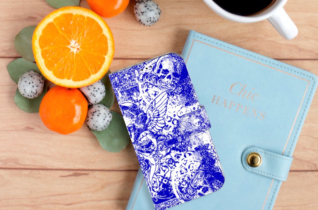 Dit ietwat duistere blauwe patroon tref je vaak aan op een bandana. Een bandana wordt om het hoofd of de hals gedragen. Een bandana is ideaal als je op de racefiets, motor of de brommer zit en jezelf wilt beschermen tegen wind, opwaaiend stof of fijn zand. Leden van motorclubs dragen dit soort bandana’s dan ook graag. Wil je jouw iPhone 14 Plus optimaal beschermen tegen opwaaiend stof, zand of andere bedreigingen, dan is dit design hoesje met Angel Skull Blue design een zeer goede keus. Het design staat op een Telefoonhoesje met Naam. Dit smartphonehoesje beschermt jouw telefoon aan alle zijden en beschikt over verschillende opbergvakjes voor pasjes en briefgeld. De case sluit perfect af met het lipje aan de buitenkant. De houder aan de binnenzijde is van TPU. Alle zijden van het hoesje worden bedrukt, inclusief het lipje