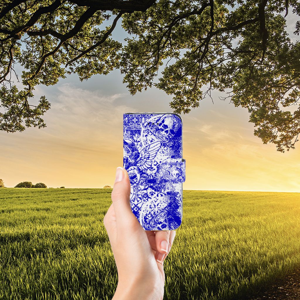 Dit ietwat duistere blauwe patroon tref je vaak aan op een bandana. Een bandana wordt om het hoofd of de hals gedragen. Een bandana is ideaal als je op de racefiets, motor of de brommer zit en jezelf wilt beschermen tegen wind, opwaaiend stof of fijn zand. Leden van motorclubs dragen dit soort bandana’s dan ook graag. Wil je jouw iPhone 7 | 8 | SE (2020) | SE (2022) optimaal beschermen tegen opwaaiend stof, zand of andere bedreigingen, dan is dit design hoesje met Angel Skull Blue design een zeer goede keus. Het design staat op een Telefoonhoesje met Naam. Dit smartphonehoesje beschermt jouw telefoon aan alle zijden en beschikt over verschillende opbergvakjes voor pasjes en briefgeld. De case sluit perfect af met het lipje aan de buitenkant. De houder aan de binnenzijde is van TPU. Alle zijden van het hoesje worden bedrukt, inclusief het lipje