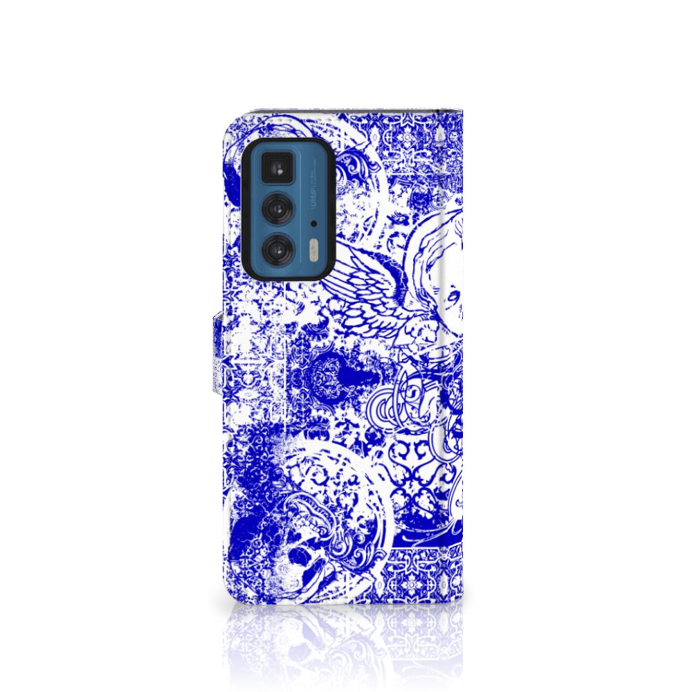 Dit ietwat duistere blauwe patroon tref je vaak aan op een bandana. Een bandana wordt om het hoofd of de hals gedragen. Een bandana is ideaal als je op de racefiets, motor of de brommer zit en jezelf wilt beschermen tegen wind, opwaaiend stof of fijn zand. Leden van motorclubs dragen dit soort bandana’s dan ook graag. Wil je jouw Motorola Edge 20 Pro optimaal beschermen tegen opwaaiend stof, zand of andere bedreigingen, dan is dit design hoesje met Angel Skull Blue design een zeer goede keus. Het design staat op een Telefoonhoesje met Naam. Dit smartphonehoesje beschermt jouw telefoon aan alle zijden en beschikt over verschillende opbergvakjes voor pasjes en briefgeld. De case sluit perfect af met het lipje aan de buitenkant. De houder aan de binnenzijde is van TPU. Alle zijden van het hoesje worden bedrukt, inclusief het lipje