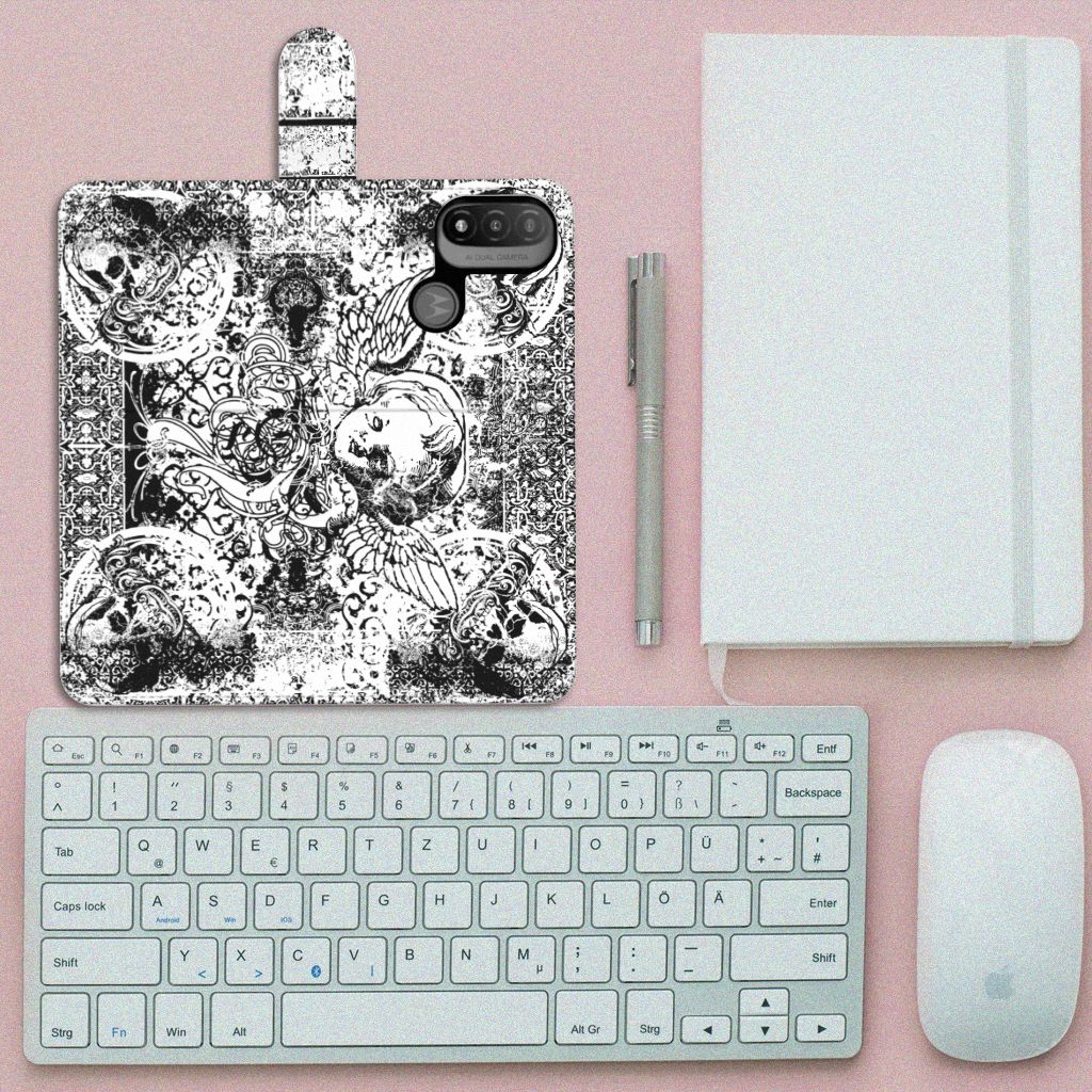Dit mysterieuze patroon tref je vaak aan op een bandana. Een bandana is een kledingstuk dat om het hoofd of de hals wordt gedragen. Behalve als kledingstuk vindt de bandana soms toepassing als signaal. Een bandana is het eenvoudigste middel als je op de motor of de brommer zit en jezelf wilt beschermen tegen wind, opwaaiend stof of fijn zand. Leden van bekende motorclubs dragen dit kledingstuk dan ook graag, om meerdere redenen. Wil je jouw Motorola Moto E20 | E30 | E40 optimaal beschermen tegen opwaaiend stof, zand of andere bedreigingen, dan is dit design hoesje met Skulls Angel patroon een zeer goede keus. Het design staat op een boekhoesje. Dit Telefoonhoesje met Naam beschermt jouw telefoon aan alle zijden en beschikt over verschillende opbergvakjes voor pasjes en briefgeld. De case sluit perfect af met het lipje aan de buitenkant. De houder aan de binnenzijde is van TPU. Alle zijden van het hoesje worden bedrukt, inclusief het lipje.