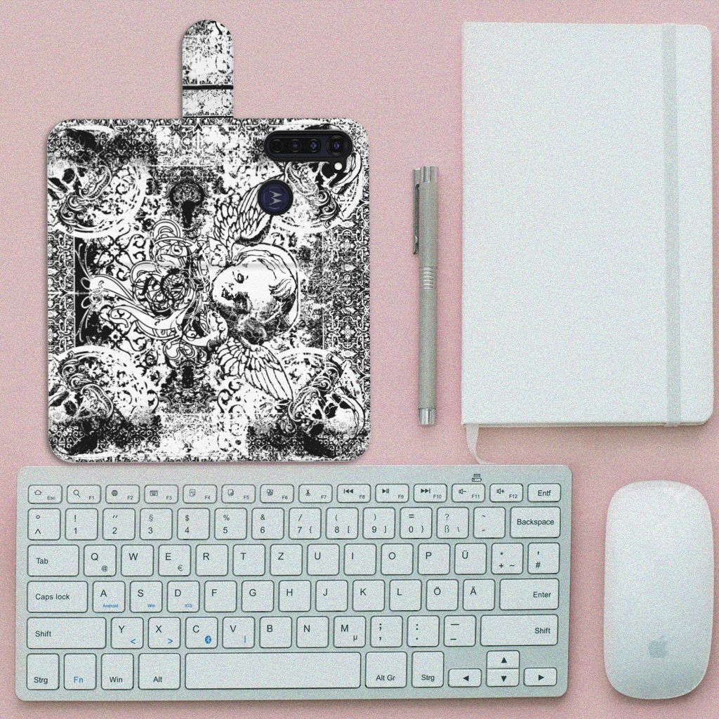 Dit mysterieuze patroon tref je vaak aan op een bandana. Een bandana is een kledingstuk dat om het hoofd of de hals wordt gedragen. Behalve als kledingstuk vindt de bandana soms toepassing als signaal. Een bandana is het eenvoudigste middel als je op de motor of de brommer zit en jezelf wilt beschermen tegen wind, opwaaiend stof of fijn zand. Leden van bekende motorclubs dragen dit kledingstuk dan ook graag, om meerdere redenen. Wil je jouw Motorola Moto G Pro optimaal beschermen tegen opwaaiend stof, zand of andere bedreigingen, dan is dit design hoesje met Skulls Angel patroon een zeer goede keus. Het design staat op een boekhoesje. Dit Telefoonhoesje met Naam beschermt jouw telefoon aan alle zijden en beschikt over verschillende opbergvakjes voor pasjes en briefgeld. De case sluit perfect af met het lipje aan de buitenkant. De houder aan de binnenzijde is van TPU. Alle zijden van het hoesje worden bedrukt, inclusief het lipje.