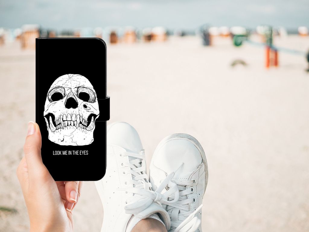 Ben je op zoek naar een uniek telefoonhoesje voor je Motorola Moto G13 | G23? Dan ben je bij B2C Telecom aan het juiste adres! Speciaal voor jou hebben we dit prachtige Skull Eyes design in onze collectie hoesjes opgenomen. Het design wordt bedrukt op een Telefoonhoesje met Naam en heeft twee vakjes voor pasjes en een groter vakje voor briefgeld. Alle zijdes van het hoesje worden bedrukt, hoe uniek is dat? Het hoesje wordt afgesloten met een sluit lipje aan de voorkant. Wil je dit design hoesje nog iets extra's geven? Voeg dan gratis je naam of een quote toe! Is dit design hoesje toch niet helemaal wat je zocht? Ontwerp dan zelf een hoesje in ons ontwerpprogramma.