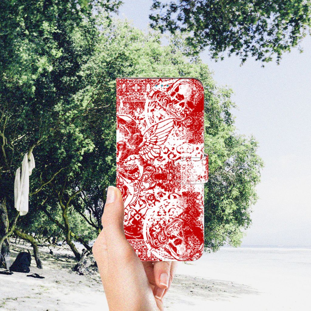 Altijd al een mysterieus patroon in de vorm van een bandana op een design hoesje willen hebben? Dit stoere Motorola Moto G51 5G Telefoonhoesje met Naam met het design Angel Skull Red is het ideale kledingstuk voor jouw telefoon. Een bandana is het eenvoudigste middel als je op de motor of de brommer zit en jezelf wilt beschermen tegen wind, opwaaiend stof of fijn zand. Leden van bekende motorclubs dragen dit dan ook graag. Wil jouw telefoon optimaal beschermen tegen opwaaiend stof, zand of andere bedreigingen, dan is dit design hoesje met bandana een zeer goede keus. Het boekhoesje beschermt jouw telefoon aan alle zijden en beschikt over opbergvakjes voor pasjes en briefgeld. De case sluit perfect af met het lipje aan de buitenkant, dat tevens is bedrukt. De houder aan de binnenzijde is van TPU. Alle zijden van het hoesje worden bedrukt met bandana print.