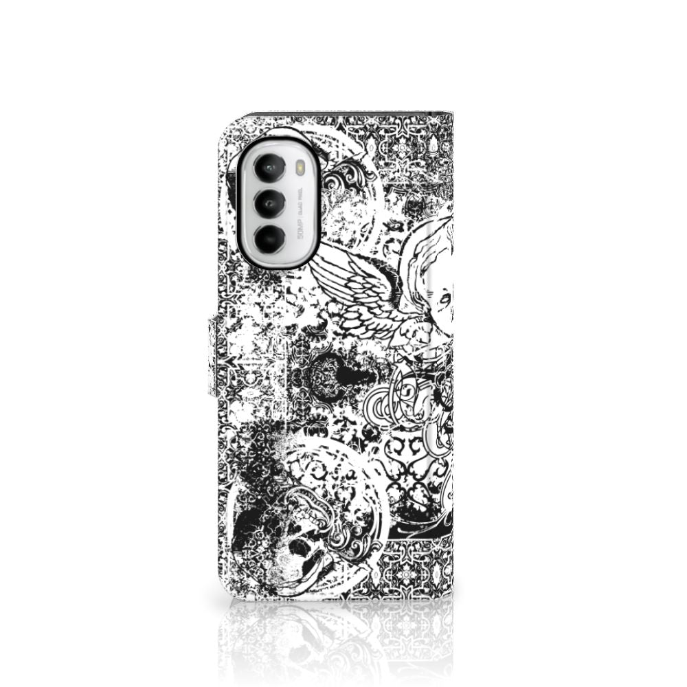 Dit mysterieuze patroon tref je vaak aan op een bandana. Een bandana is een kledingstuk dat om het hoofd of de hals wordt gedragen. Behalve als kledingstuk vindt de bandana soms toepassing als signaal. Een bandana is het eenvoudigste middel als je op de motor of de brommer zit en jezelf wilt beschermen tegen wind, opwaaiend stof of fijn zand. Leden van bekende motorclubs dragen dit kledingstuk dan ook graag, om meerdere redenen. Wil je jouw Motorola Moto G52 | Moto G82 optimaal beschermen tegen opwaaiend stof, zand of andere bedreigingen, dan is dit design hoesje met Skulls Angel patroon een zeer goede keus. Het design staat op een boekhoesje. Dit Telefoonhoesje met Naam beschermt jouw telefoon aan alle zijden en beschikt over verschillende opbergvakjes voor pasjes en briefgeld. De case sluit perfect af met het lipje aan de buitenkant. De houder aan de binnenzijde is van TPU. Alle zijden van het hoesje worden bedrukt, inclusief het lipje.