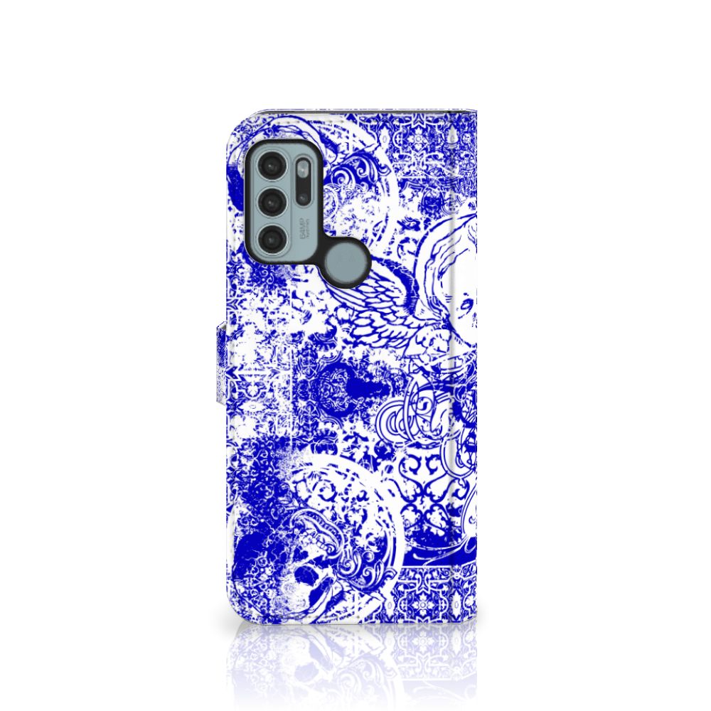 Dit ietwat duistere blauwe patroon tref je vaak aan op een bandana. Een bandana wordt om het hoofd of de hals gedragen. Een bandana is ideaal als je op de racefiets, motor of de brommer zit en jezelf wilt beschermen tegen wind, opwaaiend stof of fijn zand. Leden van motorclubs dragen dit soort bandana’s dan ook graag. Wil je jouw Motorola Moto G60s optimaal beschermen tegen opwaaiend stof, zand of andere bedreigingen, dan is dit design hoesje met Angel Skull Blue design een zeer goede keus. Het design staat op een Telefoonhoesje met Naam. Dit smartphonehoesje beschermt jouw telefoon aan alle zijden en beschikt over verschillende opbergvakjes voor pasjes en briefgeld. De case sluit perfect af met het lipje aan de buitenkant. De houder aan de binnenzijde is van TPU. Alle zijden van het hoesje worden bedrukt, inclusief het lipje