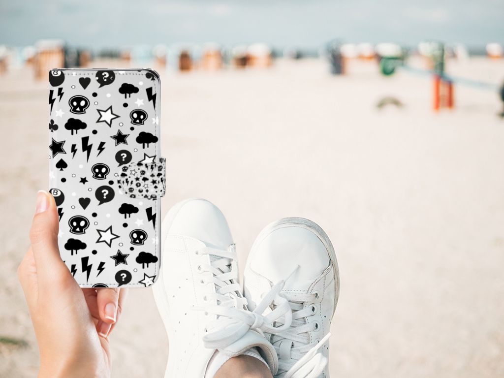 Bliksemflitsen, donderwolken, sterren en biljartballen vliegen op je af als je dit Motorola Moto G7 | G7 Plus Telefoonhoesje met Naam koopt. Het bijzondere Silver Punk design is van onze eigen ontwerper en vind je in geen enkel andere winkel of webshop. Ben je fan van dit soort stoere en opvallende hoesjes, dan kun je je geluk niet op als je ons assortiment smartphone accessoires bekijkt. Het design op dit zeer populaire boekhoesje bedrukken we zelf in ons eigen magazijn. De case heeft verschillende vakjes en is aan alle zijden bedrukt met bliksemflitsen, donderwolken, sterren en biljartballen. Ook het magnetisch lipje aan de buitenkant heeft een print. De houder binnen in het hoesje is van TPU, de buitenzijde van PU-leer. Zelfs doodshoofdjes zie je voorbijkomen in het design. Om maar aan te geven dat je met dit zilveren hoesje een krachtige smartphone accessoire te pakken hebt.