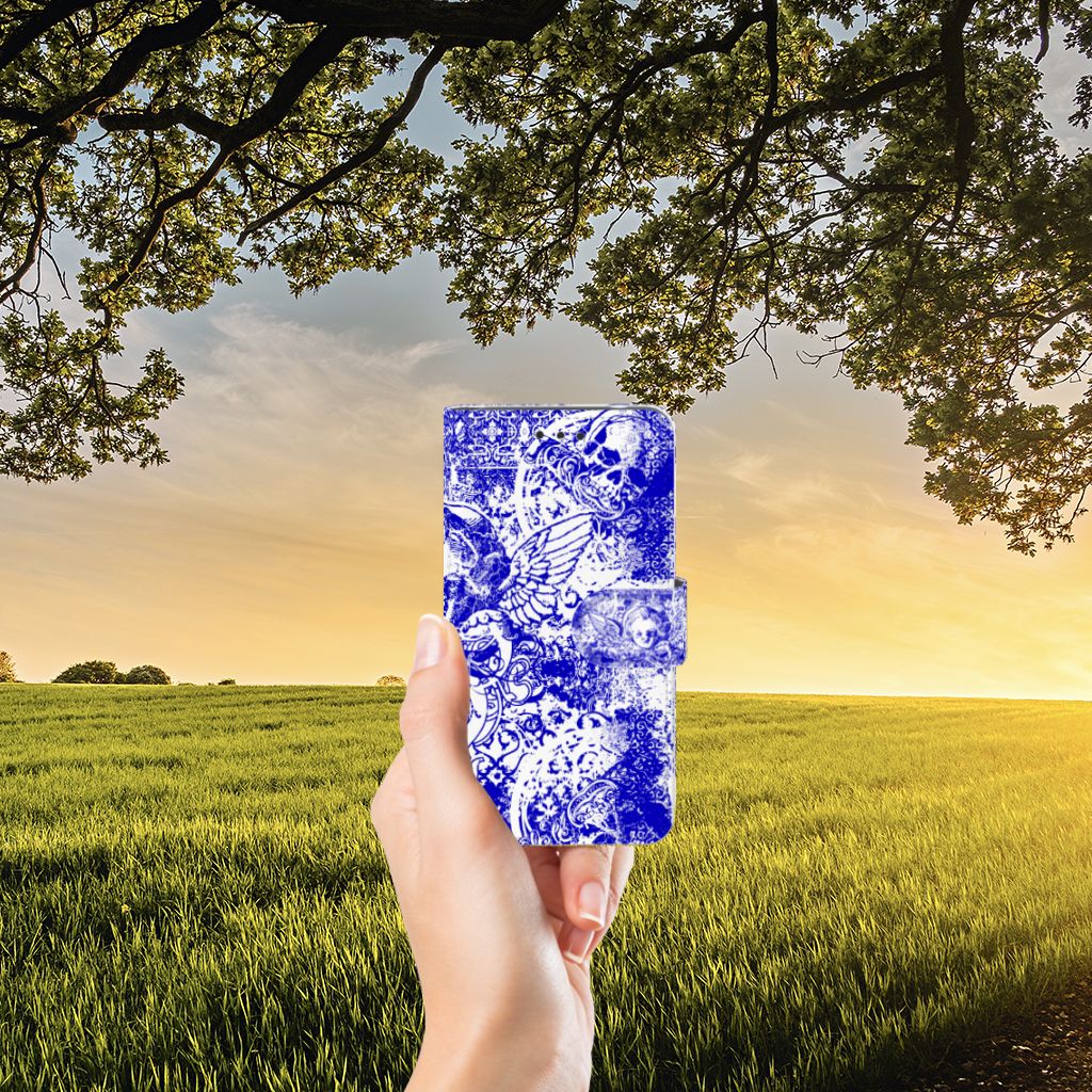 Dit ietwat duistere blauwe patroon tref je vaak aan op een bandana. Een bandana wordt om het hoofd of de hals gedragen. Een bandana is ideaal als je op de racefiets, motor of de brommer zit en jezelf wilt beschermen tegen wind, opwaaiend stof of fijn zand. Leden van motorclubs dragen dit soort bandana’s dan ook graag. Wil je jouw Nokia 2 optimaal beschermen tegen opwaaiend stof, zand of andere bedreigingen, dan is dit design hoesje met Angel Skull Blue design een zeer goede keus. Het design staat op een Telefoonhoesje met Naam. Dit smartphonehoesje beschermt jouw telefoon aan alle zijden en beschikt over verschillende opbergvakjes voor pasjes en briefgeld. De case sluit perfect af met het lipje aan de buitenkant. De houder aan de binnenzijde is van TPU. Alle zijden van het hoesje worden bedrukt, inclusief het lipje