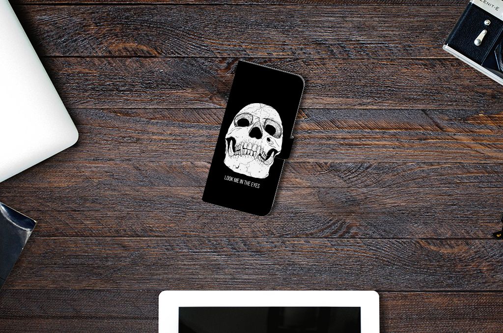 Ben je op zoek naar een uniek telefoonhoesje voor je Nokia C32? Dan ben je bij B2C Telecom aan het juiste adres! Speciaal voor jou hebben we dit prachtige Skull Eyes design in onze collectie hoesjes opgenomen. Het design wordt bedrukt op een Telefoonhoesje met Naam en heeft twee vakjes voor pasjes en een groter vakje voor briefgeld. Alle zijdes van het hoesje worden bedrukt, hoe uniek is dat? Het hoesje wordt afgesloten met een sluit lipje aan de voorkant. Wil je dit design hoesje nog iets extra's geven? Voeg dan gratis je naam of een quote toe! Is dit design hoesje toch niet helemaal wat je zocht? Ontwerp dan zelf een hoesje in ons ontwerpprogramma.