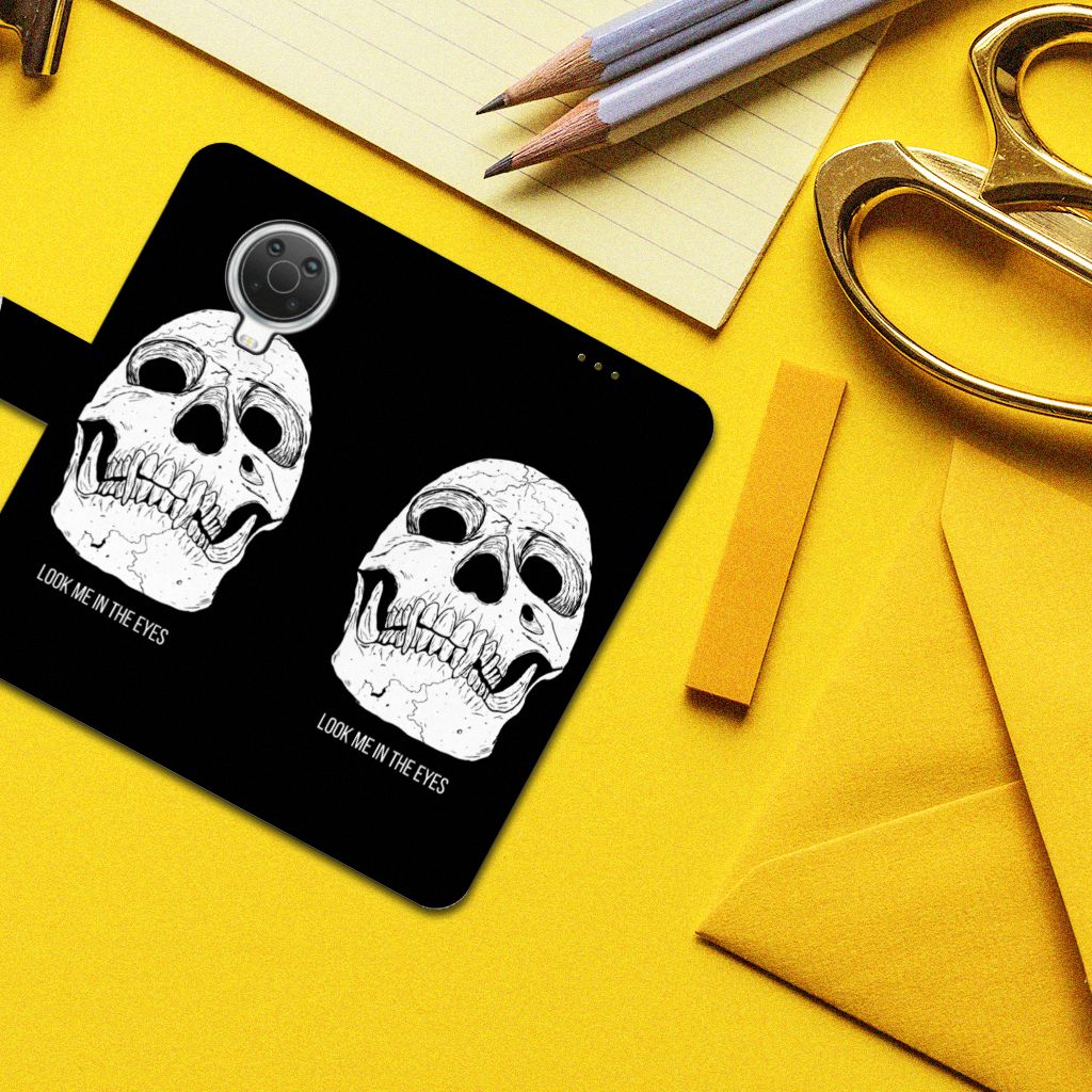 Ben je op zoek naar een uniek telefoonhoesje voor je Nokia G10 | G20? Dan ben je bij B2C Telecom aan het juiste adres! Speciaal voor jou hebben we dit prachtige Skull Eyes design in onze collectie hoesjes opgenomen. Het design wordt bedrukt op een Telefoonhoesje met Naam en heeft twee vakjes voor pasjes en een groter vakje voor briefgeld. Alle zijdes van het hoesje worden bedrukt, hoe uniek is dat? Het hoesje wordt afgesloten met een sluit lipje aan de voorkant. Wil je dit design hoesje nog iets extra's geven? Voeg dan gratis je naam of een quote toe! Is dit design hoesje toch niet helemaal wat je zocht? Ontwerp dan zelf een hoesje in ons ontwerpprogramma.