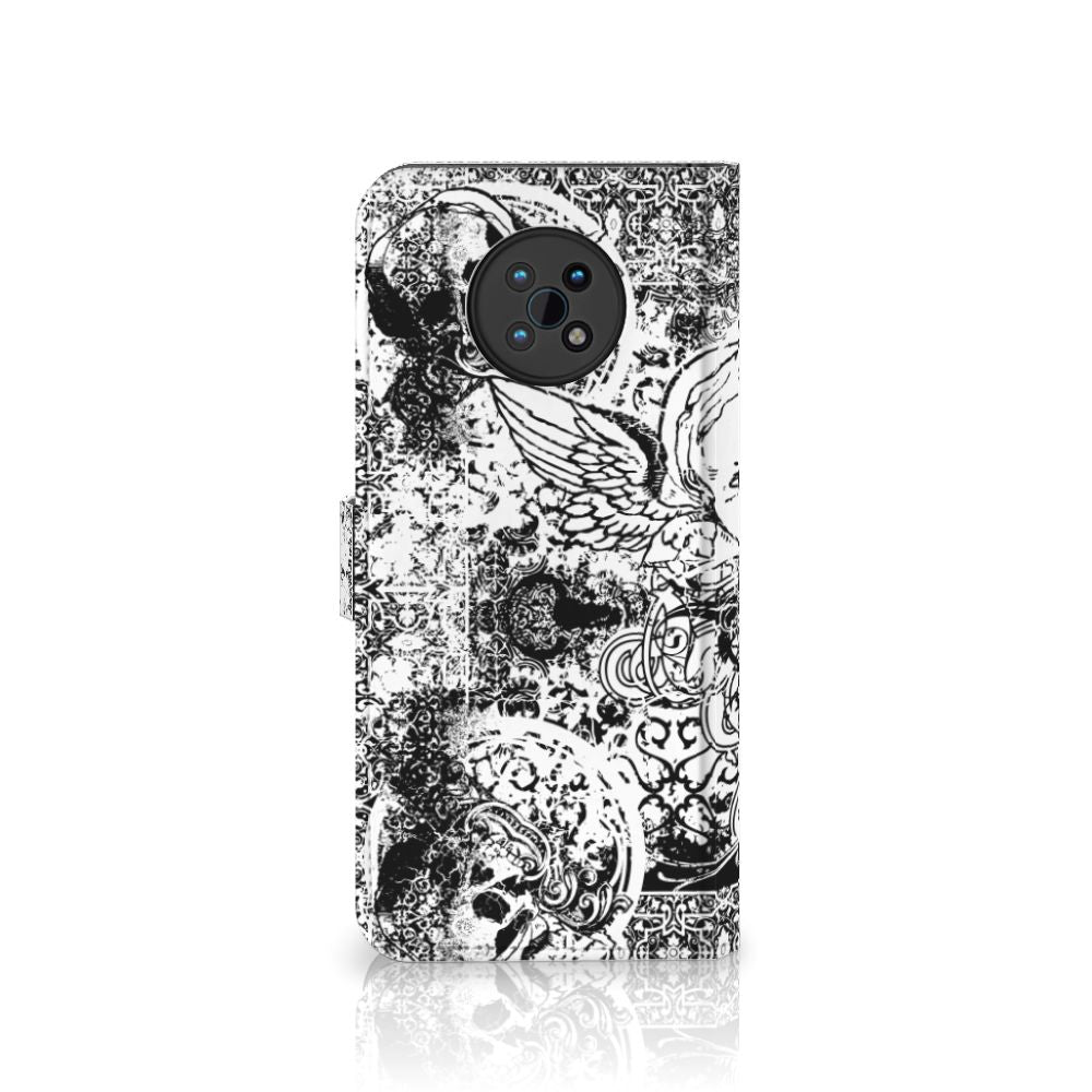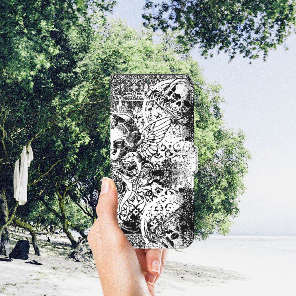 Dit mysterieuze patroon tref je vaak aan op een bandana. Een bandana is een kledingstuk dat om het hoofd of de hals wordt gedragen. Behalve als kledingstuk vindt de bandana soms toepassing als signaal. Een bandana is het eenvoudigste middel als je op de motor of de brommer zit en jezelf wilt beschermen tegen wind, opwaaiend stof of fijn zand. Leden van bekende motorclubs dragen dit kledingstuk dan ook graag, om meerdere redenen. Wil je jouw Nokia G50 optimaal beschermen tegen opwaaiend stof, zand of andere bedreigingen, dan is dit design hoesje met Skulls Angel patroon een zeer goede keus. Het design staat op een boekhoesje. Dit Telefoonhoesje met Naam beschermt jouw telefoon aan alle zijden en beschikt over verschillende opbergvakjes voor pasjes en briefgeld. De case sluit perfect af met het lipje aan de buitenkant. De houder aan de binnenzijde is van TPU. Alle zijden van het hoesje worden bedrukt, inclusief het lipje.