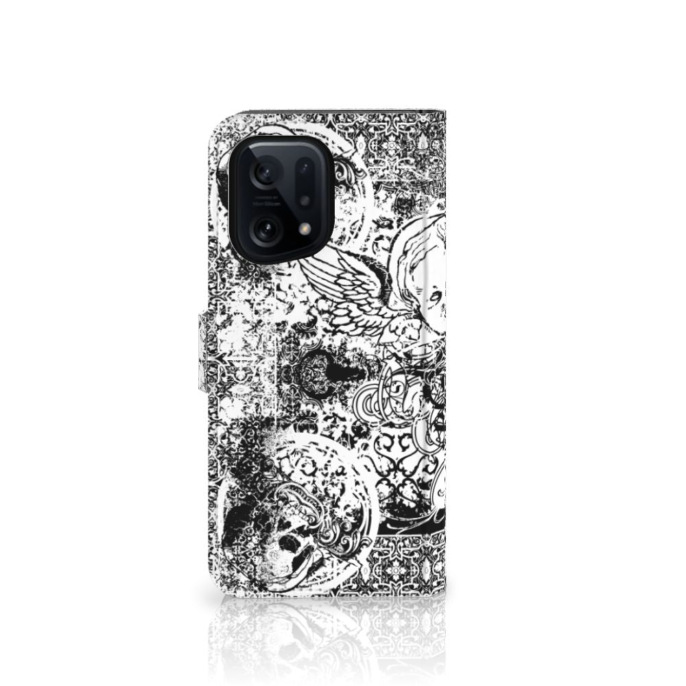Dit mysterieuze patroon tref je vaak aan op een bandana. Een bandana is een kledingstuk dat om het hoofd of de hals wordt gedragen. Behalve als kledingstuk vindt de bandana soms toepassing als signaal. Een bandana is het eenvoudigste middel als je op de motor of de brommer zit en jezelf wilt beschermen tegen wind, opwaaiend stof of fijn zand. Leden van bekende motorclubs dragen dit kledingstuk dan ook graag, om meerdere redenen. Wil je jouw OPPO Find X5 optimaal beschermen tegen opwaaiend stof, zand of andere bedreigingen, dan is dit design hoesje met Skulls Angel patroon een zeer goede keus. Het design staat op een boekhoesje. Dit Telefoonhoesje met Naam beschermt jouw telefoon aan alle zijden en beschikt over verschillende opbergvakjes voor pasjes en briefgeld. De case sluit perfect af met het lipje aan de buitenkant. De houder aan de binnenzijde is van TPU. Alle zijden van het hoesje worden bedrukt, inclusief het lipje.
