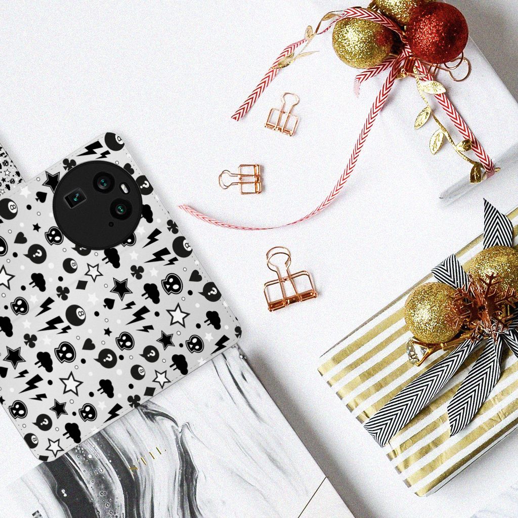 Bliksemflitsen, donderwolken, sterren en biljartballen vliegen op je af als je dit OPPO Find X6 Telefoonhoesje met Naam koopt. Het bijzondere Silver Punk design is van onze eigen ontwerper en vind je in geen enkel andere winkel of webshop. Ben je fan van dit soort stoere en opvallende hoesjes, dan kun je je geluk niet op als je ons assortiment smartphone accessoires bekijkt. Het design op dit zeer populaire boekhoesje bedrukken we zelf in ons eigen magazijn. De case heeft verschillende vakjes en is aan alle zijden bedrukt met bliksemflitsen, donderwolken, sterren en biljartballen. Ook het magnetisch lipje aan de buitenkant heeft een print. De houder binnen in het hoesje is van TPU, de buitenzijde van PU-leer. Zelfs doodshoofdjes zie je voorbijkomen in het design. Om maar aan te geven dat je met dit zilveren hoesje een krachtige smartphone accessoire te pakken hebt.
