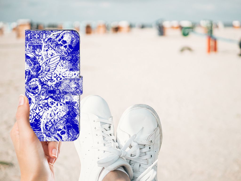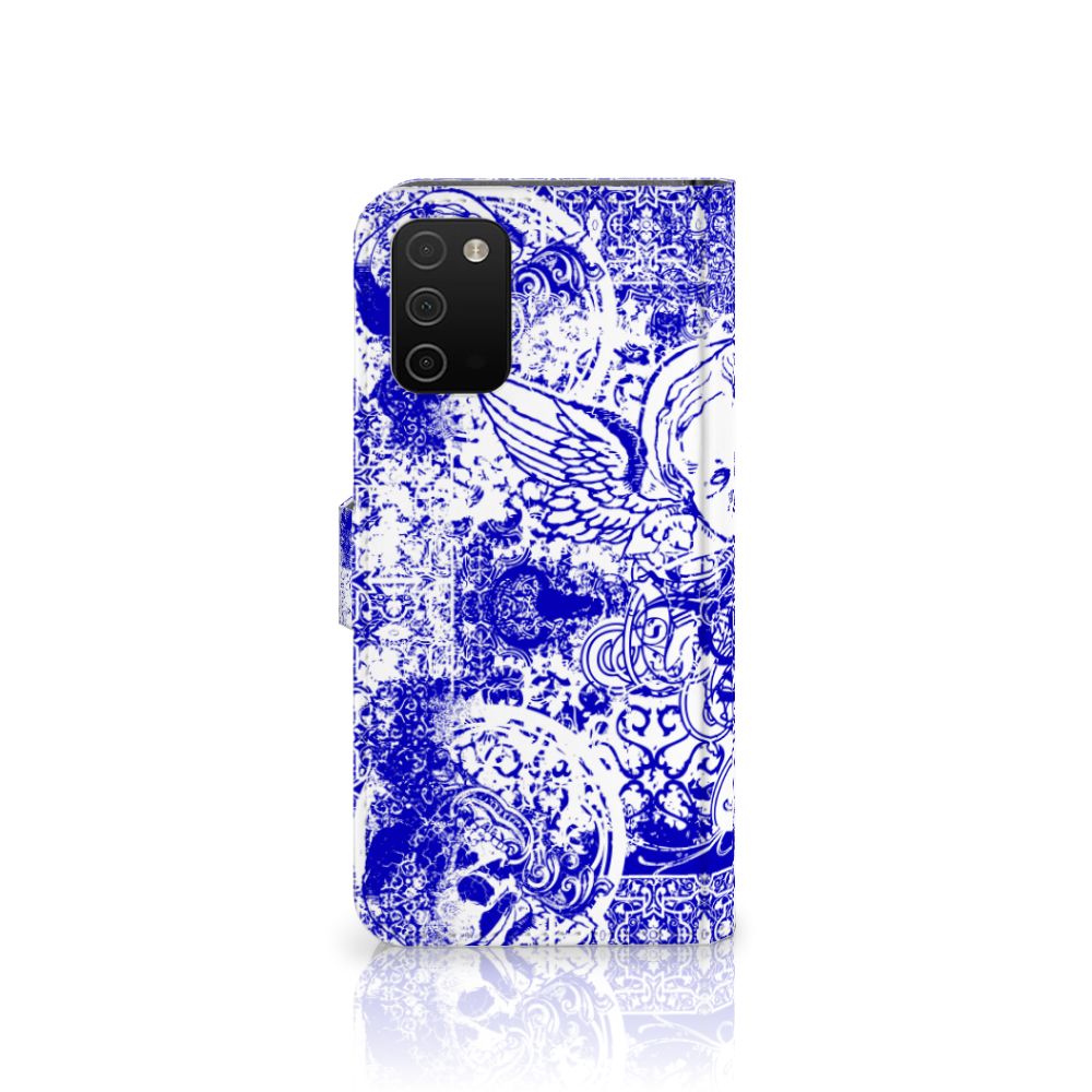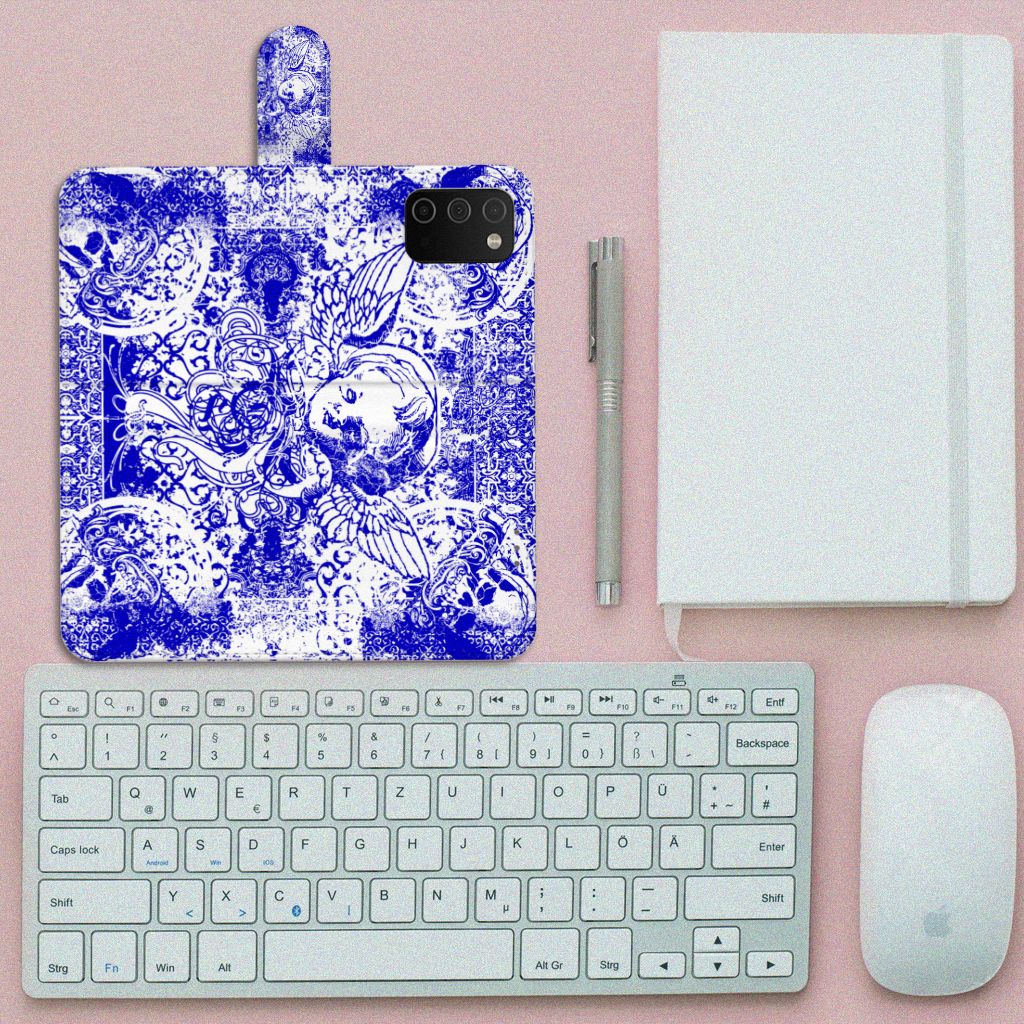 Dit ietwat duistere blauwe patroon tref je vaak aan op een bandana. Een bandana wordt om het hoofd of de hals gedragen. Een bandana is ideaal als je op de racefiets, motor of de brommer zit en jezelf wilt beschermen tegen wind, opwaaiend stof of fijn zand. Leden van motorclubs dragen dit soort bandana’s dan ook graag. Wil je jouw Samsung Galaxy A03s optimaal beschermen tegen opwaaiend stof, zand of andere bedreigingen, dan is dit design hoesje met Angel Skull Blue design een zeer goede keus. Het design staat op een Telefoonhoesje met Naam. Dit smartphonehoesje beschermt jouw telefoon aan alle zijden en beschikt over verschillende opbergvakjes voor pasjes en briefgeld. De case sluit perfect af met het lipje aan de buitenkant. De houder aan de binnenzijde is van TPU. Alle zijden van het hoesje worden bedrukt, inclusief het lipje
