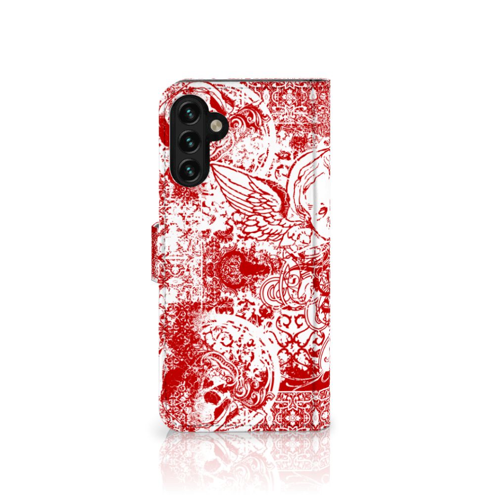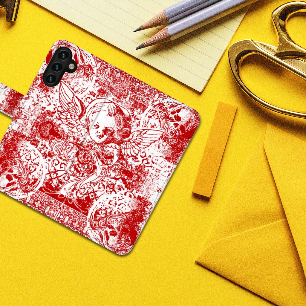 Altijd al een mysterieus patroon in de vorm van een bandana op een design hoesje willen hebben? Dit stoere Samsung Galaxy A04s | Samsung Galaxy A13 5G Telefoonhoesje met Naam met het design Angel Skull Red is het ideale kledingstuk voor jouw telefoon. Een bandana is het eenvoudigste middel als je op de motor of de brommer zit en jezelf wilt beschermen tegen wind, opwaaiend stof of fijn zand. Leden van bekende motorclubs dragen dit dan ook graag. Wil jouw telefoon optimaal beschermen tegen opwaaiend stof, zand of andere bedreigingen, dan is dit design hoesje met bandana een zeer goede keus. Het boekhoesje beschermt jouw telefoon aan alle zijden en beschikt over opbergvakjes voor pasjes en briefgeld. De case sluit perfect af met het lipje aan de buitenkant, dat tevens is bedrukt. De houder aan de binnenzijde is van TPU. Alle zijden van het hoesje worden bedrukt met bandana print.