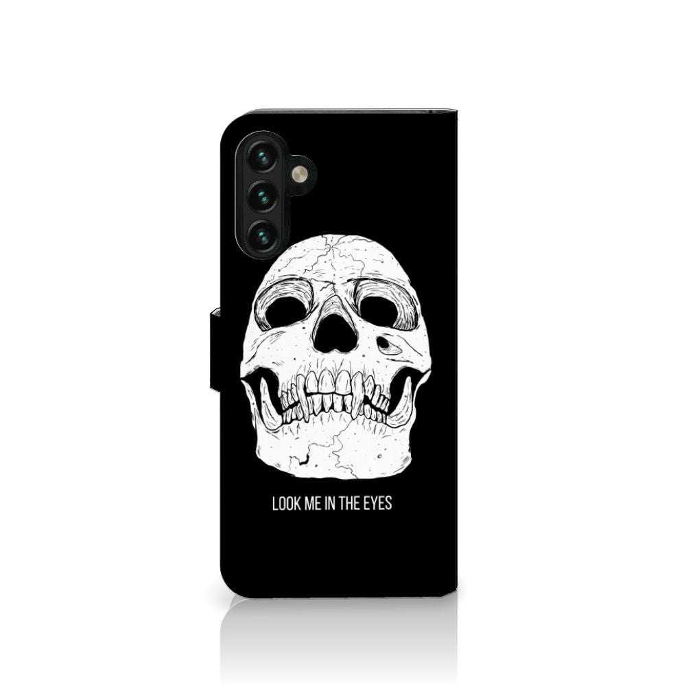 Ben je op zoek naar een uniek telefoonhoesje voor je Samsung Galaxy A04s | Samsung Galaxy A13 5G? Dan ben je bij B2C Telecom aan het juiste adres! Speciaal voor jou hebben we dit prachtige Skull Eyes design in onze collectie hoesjes opgenomen. Het design wordt bedrukt op een Telefoonhoesje met Naam en heeft twee vakjes voor pasjes en een groter vakje voor briefgeld. Alle zijdes van het hoesje worden bedrukt, hoe uniek is dat? Het hoesje wordt afgesloten met een sluit lipje aan de voorkant. Wil je dit design hoesje nog iets extra's geven? Voeg dan gratis je naam of een quote toe! Is dit design hoesje toch niet helemaal wat je zocht? Ontwerp dan zelf een hoesje in ons ontwerpprogramma.