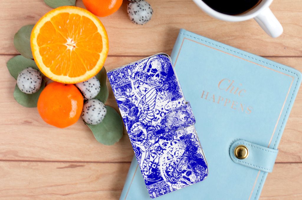 Dit ietwat duistere blauwe patroon tref je vaak aan op een bandana. Een bandana wordt om het hoofd of de hals gedragen. Een bandana is ideaal als je op de racefiets, motor of de brommer zit en jezelf wilt beschermen tegen wind, opwaaiend stof of fijn zand. Leden van motorclubs dragen dit soort bandana’s dan ook graag. Wil je jouw Samsung Galaxy A51 optimaal beschermen tegen opwaaiend stof, zand of andere bedreigingen, dan is dit design hoesje met Angel Skull Blue design een zeer goede keus. Het design staat op een Telefoonhoesje met Naam. Dit smartphonehoesje beschermt jouw telefoon aan alle zijden en beschikt over verschillende opbergvakjes voor pasjes en briefgeld. De case sluit perfect af met het lipje aan de buitenkant. De houder aan de binnenzijde is van TPU. Alle zijden van het hoesje worden bedrukt, inclusief het lipje