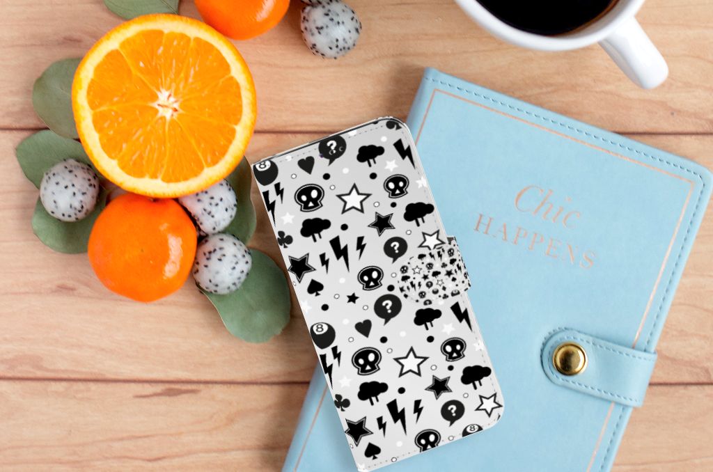 Bliksemflitsen, donderwolken, sterren en biljartballen vliegen op je af als je dit Samsung Galaxy A70 Telefoonhoesje met Naam koopt. Het bijzondere Silver Punk design is van onze eigen ontwerper en vind je in geen enkel andere winkel of webshop. Ben je fan van dit soort stoere en opvallende hoesjes, dan kun je je geluk niet op als je ons assortiment smartphone accessoires bekijkt. Het design op dit zeer populaire boekhoesje bedrukken we zelf in ons eigen magazijn. De case heeft verschillende vakjes en is aan alle zijden bedrukt met bliksemflitsen, donderwolken, sterren en biljartballen. Ook het magnetisch lipje aan de buitenkant heeft een print. De houder binnen in het hoesje is van TPU, de buitenzijde van PU-leer. Zelfs doodshoofdjes zie je voorbijkomen in het design. Om maar aan te geven dat je met dit zilveren hoesje een krachtige smartphone accessoire te pakken hebt.