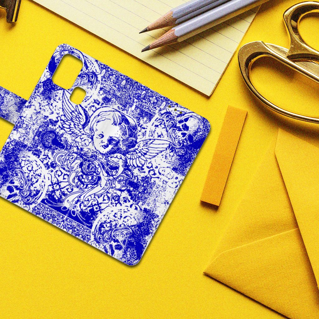 Dit ietwat duistere blauwe patroon tref je vaak aan op een bandana. Een bandana wordt om het hoofd of de hals gedragen. Een bandana is ideaal als je op de racefiets, motor of de brommer zit en jezelf wilt beschermen tegen wind, opwaaiend stof of fijn zand. Leden van motorclubs dragen dit soort bandana’s dan ook graag. Wil je jouw Samsung Galaxy M31 optimaal beschermen tegen opwaaiend stof, zand of andere bedreigingen, dan is dit design hoesje met Angel Skull Blue design een zeer goede keus. Het design staat op een Telefoonhoesje met Naam. Dit smartphonehoesje beschermt jouw telefoon aan alle zijden en beschikt over verschillende opbergvakjes voor pasjes en briefgeld. De case sluit perfect af met het lipje aan de buitenkant. De houder aan de binnenzijde is van TPU. Alle zijden van het hoesje worden bedrukt, inclusief het lipje