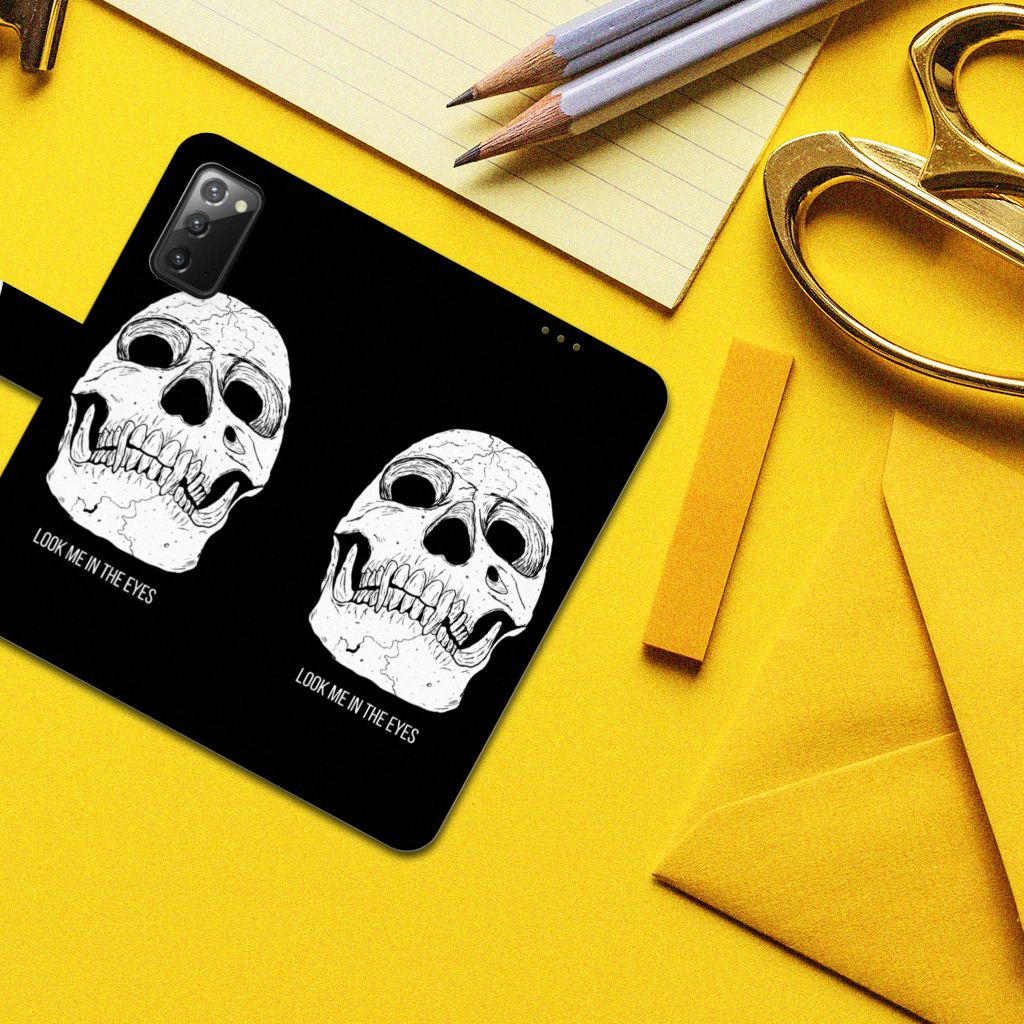 Ben je op zoek naar een uniek telefoonhoesje voor je Samsung Galaxy Note 20? Dan ben je bij B2C Telecom aan het juiste adres! Speciaal voor jou hebben we dit prachtige Skull Eyes design in onze collectie hoesjes opgenomen. Het design wordt bedrukt op een Telefoonhoesje met Naam en heeft twee vakjes voor pasjes en een groter vakje voor briefgeld. Alle zijdes van het hoesje worden bedrukt, hoe uniek is dat? Het hoesje wordt afgesloten met een sluit lipje aan de voorkant. Wil je dit design hoesje nog iets extra's geven? Voeg dan gratis je naam of een quote toe! Is dit design hoesje toch niet helemaal wat je zocht? Ontwerp dan zelf een hoesje in ons ontwerpprogramma.