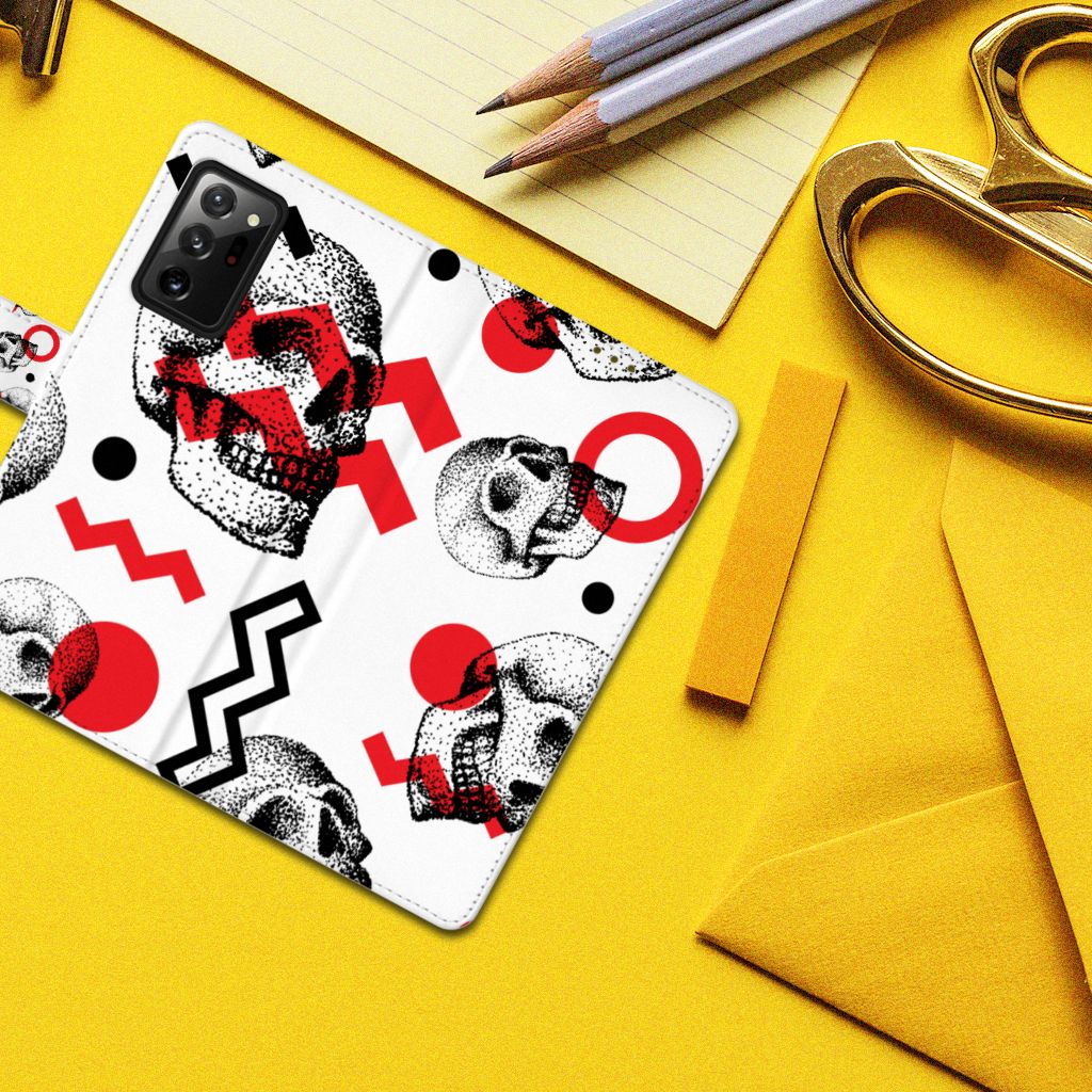 Dit mooie Samsung Galaxy Note20 Ultra Telefoonhoesje met Naam met Skull Red design is een stoere en duurzame bescherming voor jouw smartphone. De rode en witte patronen komen vloeiend samen met de schedel en worden op alle zijden van de case bedrukt. Het printen doen we in eigen beheer, zodat we zeker weten dat het design van schedel en rode en witte patronen van uitstekende kwaliteit is. Het smartphone hoesje met schedel en rode en witte patronen is super handig. Een boekhoesje met schedel en rode en witte patronen is perfect op maat gemaakt en heeft verschillende vakjes voor pasjes en briefgeld. Daarnaast is het lipje aan de buitenkant zeer veilig. De case sluit perfect af. De houder aan de binnenzijde is van tpu en is doorzichtig. Ook het lipje aan de buitenzijde wordt met een deel van de schedel of met rode en witte patronen bedrukt. Kijk voor andere patronen samen met schedels in ons assortiment design hoesjes of ontwerp je eigen unieke case!