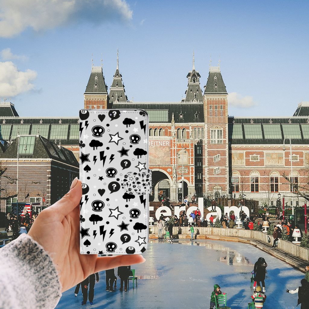 Bliksemflitsen, donderwolken, sterren en biljartballen vliegen op je af als je dit Samsung Galaxy S20 Ultra Telefoonhoesje met Naam koopt. Het bijzondere Silver Punk design is van onze eigen ontwerper en vind je in geen enkel andere winkel of webshop. Ben je fan van dit soort stoere en opvallende hoesjes, dan kun je je geluk niet op als je ons assortiment smartphone accessoires bekijkt. Het design op dit zeer populaire boekhoesje bedrukken we zelf in ons eigen magazijn. De case heeft verschillende vakjes en is aan alle zijden bedrukt met bliksemflitsen, donderwolken, sterren en biljartballen. Ook het magnetisch lipje aan de buitenkant heeft een print. De houder binnen in het hoesje is van TPU, de buitenzijde van PU-leer. Zelfs doodshoofdjes zie je voorbijkomen in het design. Om maar aan te geven dat je met dit zilveren hoesje een krachtige smartphone accessoire te pakken hebt.
