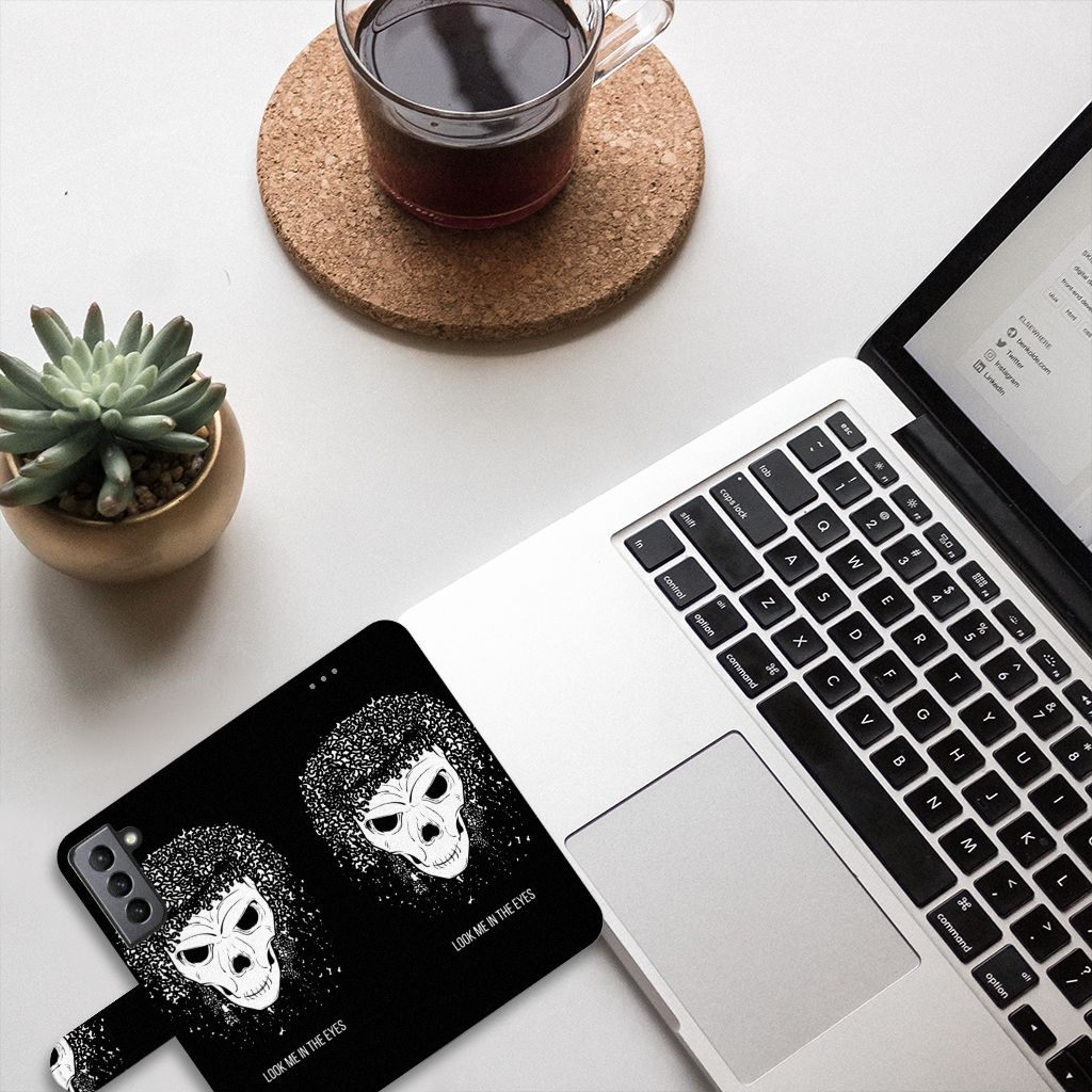 Ben je op zoek naar een uniek telefoonhoesje voor je Samsung Galaxy S21 FE? Dan ben je bij B2C Telecom aan het juiste adres! Speciaal voor jou hebben we dit prachtige Skull Hair design in onze collectie hoesjes opgenomen. Het design wordt bedrukt op een Telefoonhoesje met Naam en heeft twee vakjes voor pasjes en een groter vakje voor briefgeld. Alle zijdes van het hoesje worden bedrukt, hoe uniek is dat? Het hoesje wordt afgesloten met een sluit lipje aan de voorkant. Wil je dit design hoesje nog iets extra's geven? Voeg dan gratis je naam of een quote toe! Is dit design hoesje toch niet helemaal wat je zocht? Ontwerp dan zelf een hoesje in ons ontwerpprogramma.