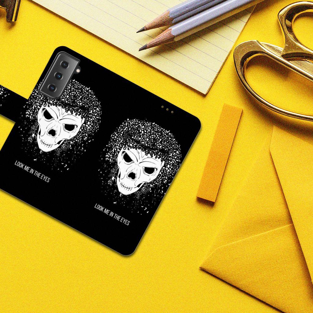 Ben je op zoek naar een uniek telefoonhoesje voor je Samsung Galaxy S21? Dan ben je bij B2C Telecom aan het juiste adres! Speciaal voor jou hebben we dit prachtige Skull Hair design in onze collectie hoesjes opgenomen. Het design wordt bedrukt op een Telefoonhoesje met Naam en heeft twee vakjes voor pasjes en een groter vakje voor briefgeld. Alle zijdes van het hoesje worden bedrukt, hoe uniek is dat? Het hoesje wordt afgesloten met een sluit lipje aan de voorkant. Wil je dit design hoesje nog iets extra's geven? Voeg dan gratis je naam of een quote toe! Is dit design hoesje toch niet helemaal wat je zocht? Ontwerp dan zelf een hoesje in ons ontwerpprogramma.