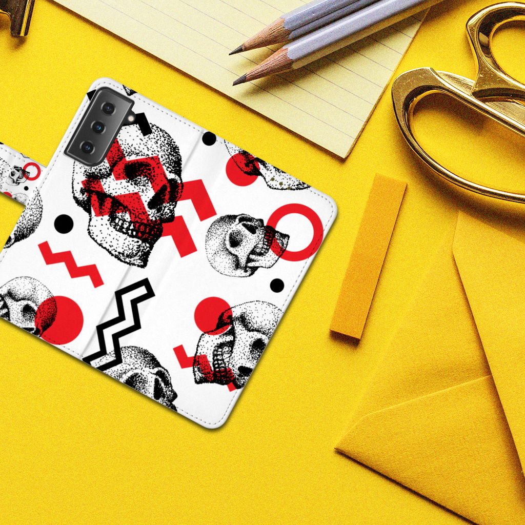 Dit mooie Samsung Galaxy S21 Telefoonhoesje met Naam met Skull Red design is een stoere en duurzame bescherming voor jouw smartphone. De rode en witte patronen komen vloeiend samen met de schedel en worden op alle zijden van de case bedrukt. Het printen doen we in eigen beheer, zodat we zeker weten dat het design van schedel en rode en witte patronen van uitstekende kwaliteit is. Het smartphone hoesje met schedel en rode en witte patronen is super handig. Een boekhoesje met schedel en rode en witte patronen is perfect op maat gemaakt en heeft verschillende vakjes voor pasjes en briefgeld. Daarnaast is het lipje aan de buitenkant zeer veilig. De case sluit perfect af. De houder aan de binnenzijde is van tpu en is doorzichtig. Ook het lipje aan de buitenzijde wordt met een deel van de schedel of met rode en witte patronen bedrukt. Kijk voor andere patronen samen met schedels in ons assortiment design hoesjes of ontwerp je eigen unieke case!