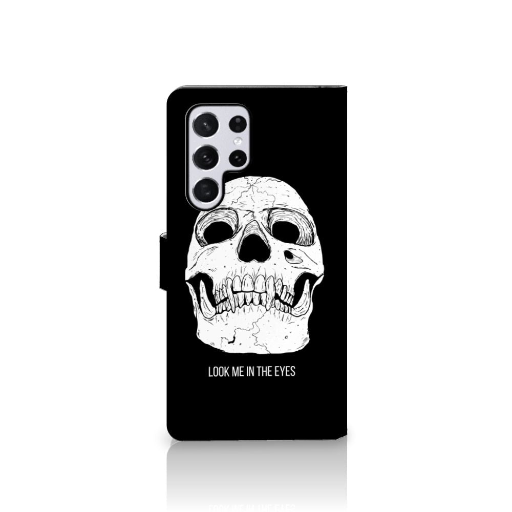 Ben je op zoek naar een uniek telefoonhoesje voor je Samsung Galaxy S22 Ultra? Dan ben je bij B2C Telecom aan het juiste adres! Speciaal voor jou hebben we dit prachtige Skull Eyes design in onze collectie hoesjes opgenomen. Het design wordt bedrukt op een Telefoonhoesje met Naam en heeft twee vakjes voor pasjes en een groter vakje voor briefgeld. Alle zijdes van het hoesje worden bedrukt, hoe uniek is dat? Het hoesje wordt afgesloten met een sluit lipje aan de voorkant. Wil je dit design hoesje nog iets extra's geven? Voeg dan gratis je naam of een quote toe! Is dit design hoesje toch niet helemaal wat je zocht? Ontwerp dan zelf een hoesje in ons ontwerpprogramma.