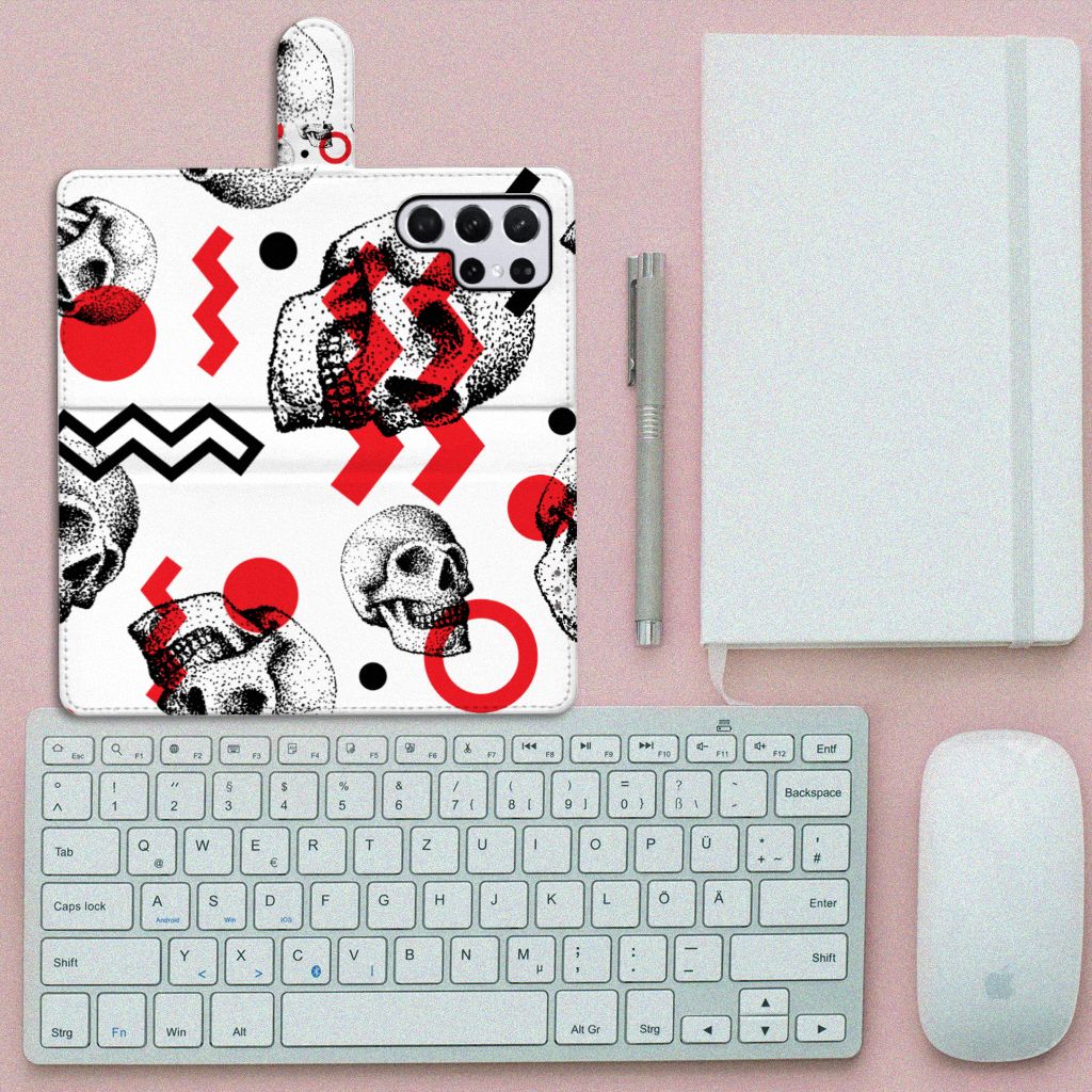 Dit mooie Samsung Galaxy S22 Ultra Telefoonhoesje met Naam met Skull Red design is een stoere en duurzame bescherming voor jouw smartphone. De rode en witte patronen komen vloeiend samen met de schedel en worden op alle zijden van de case bedrukt. Het printen doen we in eigen beheer, zodat we zeker weten dat het design van schedel en rode en witte patronen van uitstekende kwaliteit is. Het smartphone hoesje met schedel en rode en witte patronen is super handig. Een boekhoesje met schedel en rode en witte patronen is perfect op maat gemaakt en heeft verschillende vakjes voor pasjes en briefgeld. Daarnaast is het lipje aan de buitenkant zeer veilig. De case sluit perfect af. De houder aan de binnenzijde is van tpu en is doorzichtig. Ook het lipje aan de buitenzijde wordt met een deel van de schedel of met rode en witte patronen bedrukt. Kijk voor andere patronen samen met schedels in ons assortiment design hoesjes of ontwerp je eigen unieke case!