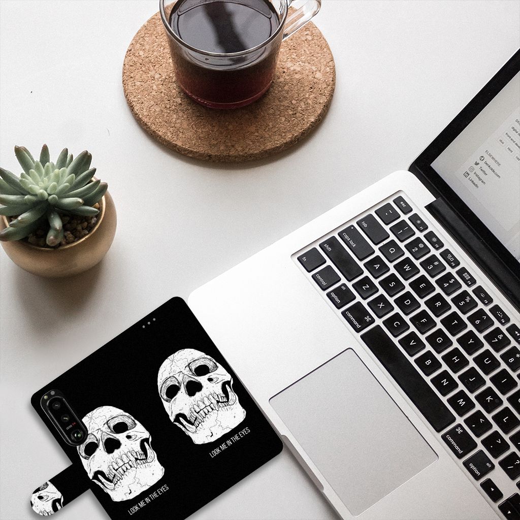 Ben je op zoek naar een uniek telefoonhoesje voor je Sony Xperia 5III? Dan ben je bij B2C Telecom aan het juiste adres! Speciaal voor jou hebben we dit prachtige Skull Eyes design in onze collectie hoesjes opgenomen. Het design wordt bedrukt op een Telefoonhoesje met Naam en heeft twee vakjes voor pasjes en een groter vakje voor briefgeld. Alle zijdes van het hoesje worden bedrukt, hoe uniek is dat? Het hoesje wordt afgesloten met een sluit lipje aan de voorkant. Wil je dit design hoesje nog iets extra's geven? Voeg dan gratis je naam of een quote toe! Is dit design hoesje toch niet helemaal wat je zocht? Ontwerp dan zelf een hoesje in ons ontwerpprogramma.