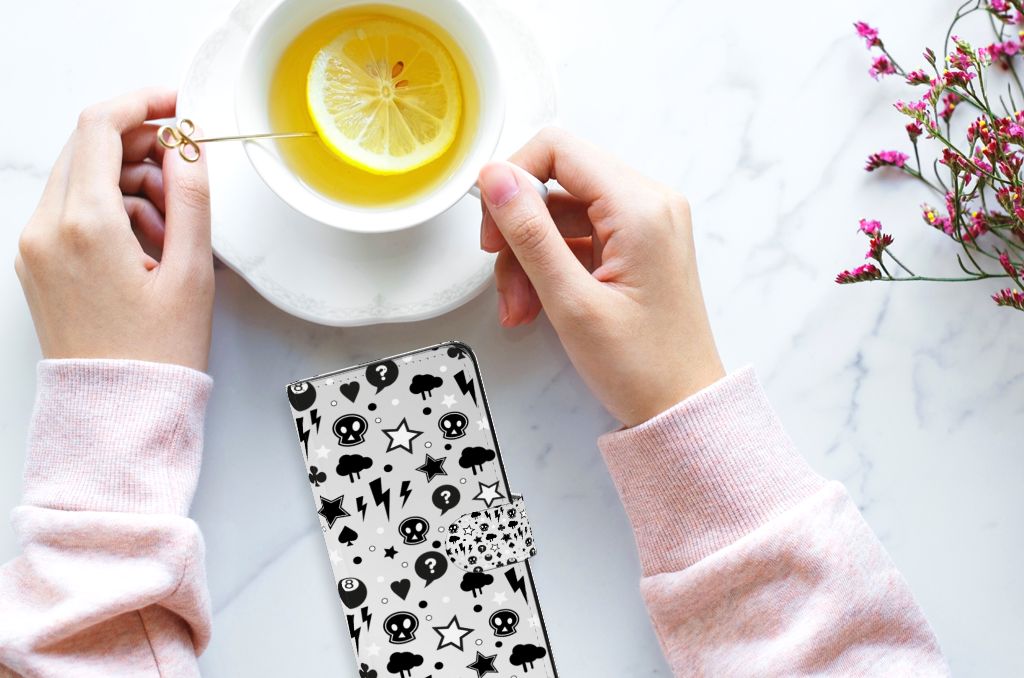 Bliksemflitsen, donderwolken, sterren en biljartballen vliegen op je af als je dit Xiaomi Redmi Note 12 4G Telefoonhoesje met Naam koopt. Het bijzondere Silver Punk design is van onze eigen ontwerper en vind je in geen enkel andere winkel of webshop. Ben je fan van dit soort stoere en opvallende hoesjes, dan kun je je geluk niet op als je ons assortiment smartphone accessoires bekijkt. Het design op dit zeer populaire boekhoesje bedrukken we zelf in ons eigen magazijn. De case heeft verschillende vakjes en is aan alle zijden bedrukt met bliksemflitsen, donderwolken, sterren en biljartballen. Ook het magnetisch lipje aan de buitenkant heeft een print. De houder binnen in het hoesje is van TPU, de buitenzijde van PU-leer. Zelfs doodshoofdjes zie je voorbijkomen in het design. Om maar aan te geven dat je met dit zilveren hoesje een krachtige smartphone accessoire te pakken hebt.
