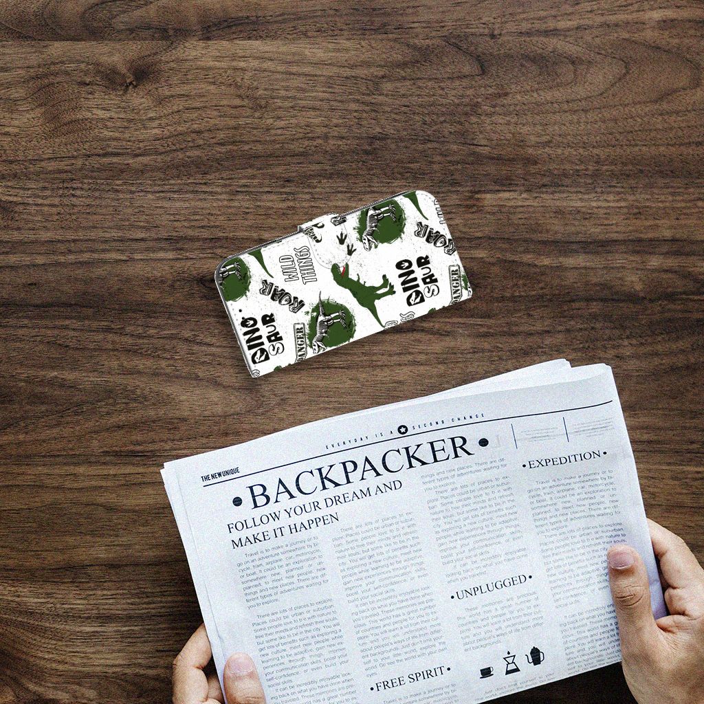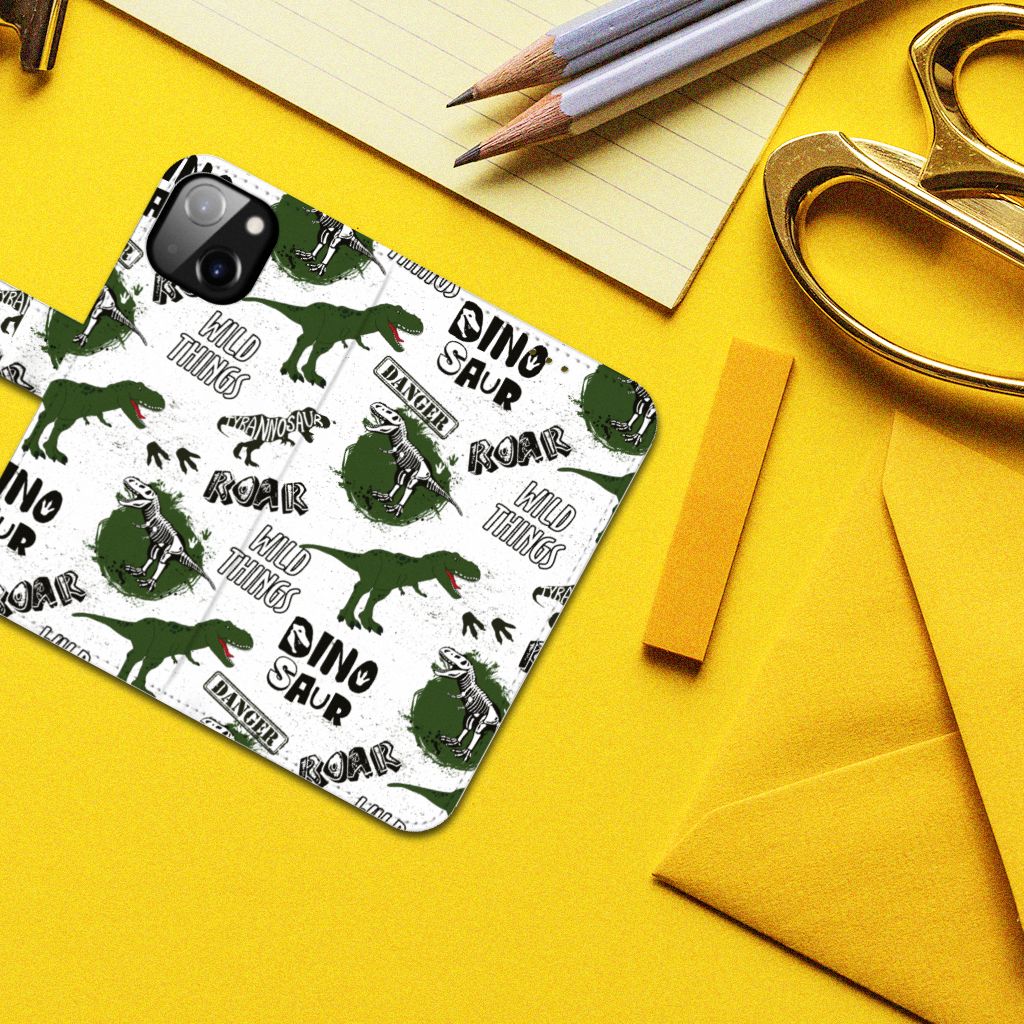 Ook zo gek op alles met dinosaurussen te maken heeft? Dan mag dit hoesje met dino’s zeker niet ontbreken in jouw collectie! De skeletten, pootafdrukken en dino’s zorgen er hopelijk voor dat iedereen van jouw Apple iPhone 14 afblijft! Dit toffe dino design wordt geprint op een Telefoonhoesje met Pasjes waarin je drie pasjes kwijt kunt. Het hoesje wordt afgesloten met een sluit lipje, waardoor jouw telefoon altijd goed beschermd is. Bescherm je Apple iPhone 14 vandaag nog met dit gevaarlijke Dinosaurus design hoesje!