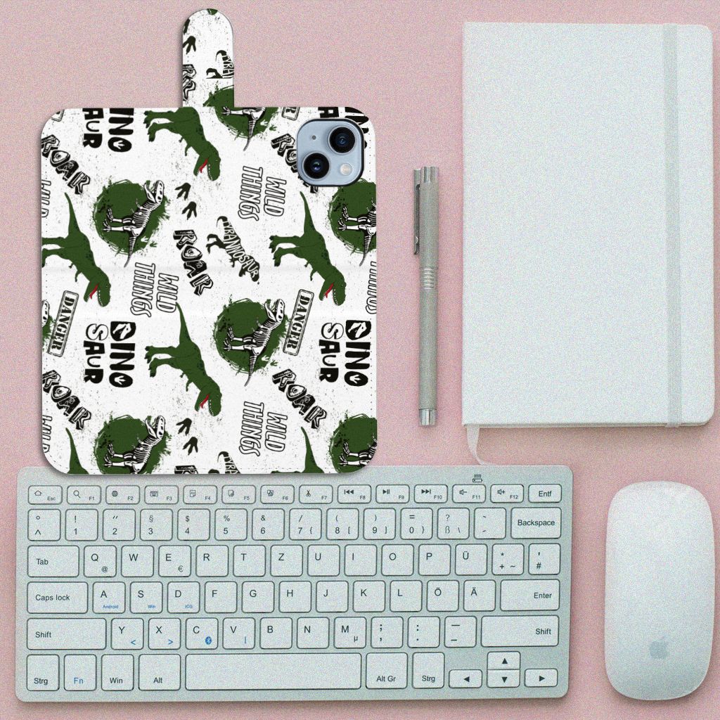 Ook zo gek op alles met dinosaurussen te maken heeft? Dan mag dit hoesje met dino’s zeker niet ontbreken in jouw collectie! De skeletten, pootafdrukken en dino’s zorgen er hopelijk voor dat iedereen van jouw iPhone 15 Plus afblijft! Dit toffe dino design wordt geprint op een Telefoonhoesje met Pasjes waarin je drie pasjes kwijt kunt. Het hoesje wordt afgesloten met een sluit lipje, waardoor jouw telefoon altijd goed beschermd is. Bescherm je iPhone 15 Plus vandaag nog met dit gevaarlijke Dinosaurus design hoesje!