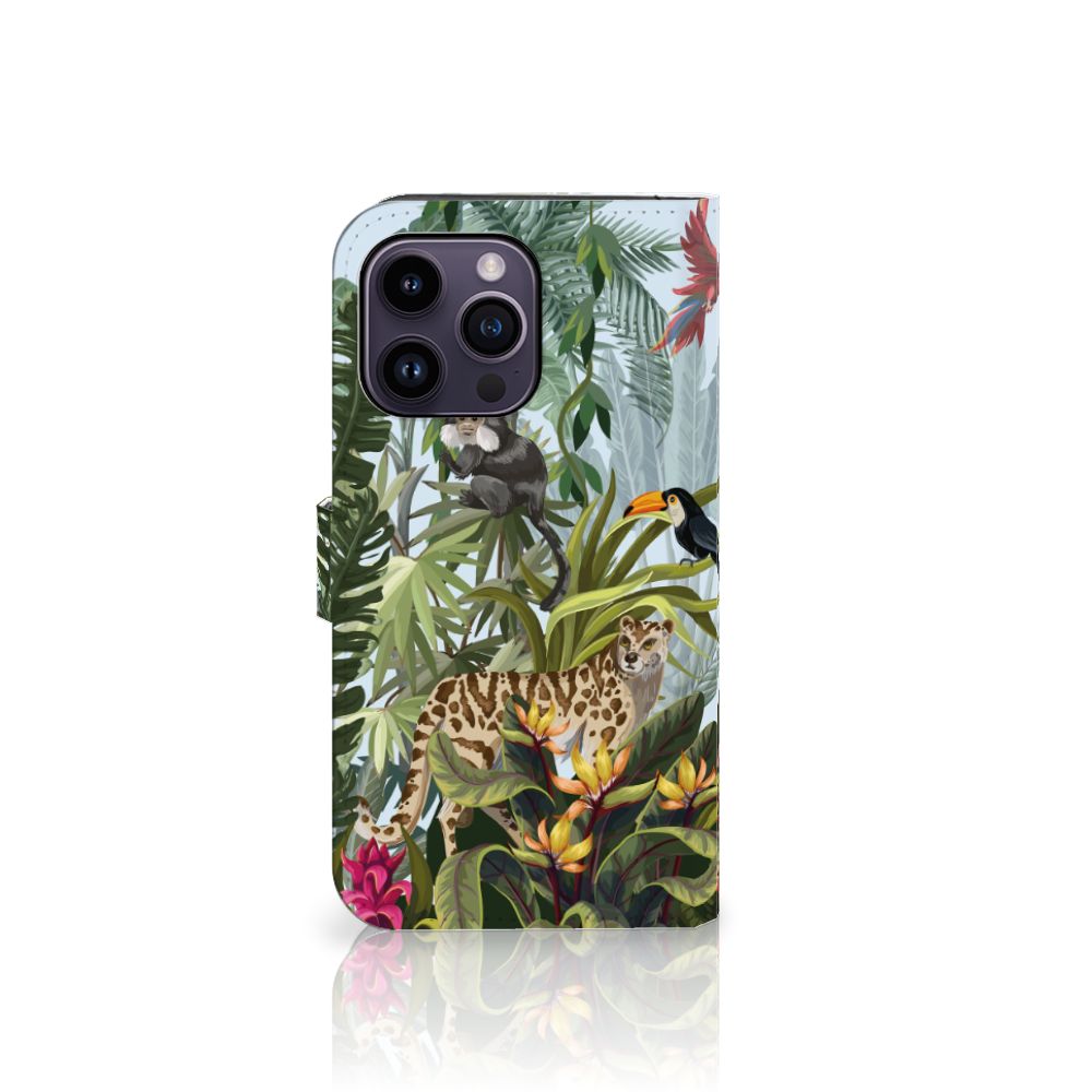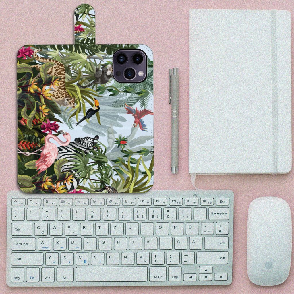 Ben je op zoek naar een tropische verrassing voor je iPhone 15 Pro Max? Dan is dit hoesje in jungle stijl zeker iets voor jou! Met de verschillende soorten dieren waan je je even in de jungle, vind je ook niet? Dit design wordt geprint op een Telefoonhoesje met Pasjes waarin je drie pasjes kwijt kunt. Het hoesje wordt afgesloten met een sluit lipje, waardoor jouw telefoon altijd goed beschermd is. Bescherm je iPhone 15 Pro Max vandaag nog met dit stoere jungle design hoesje!