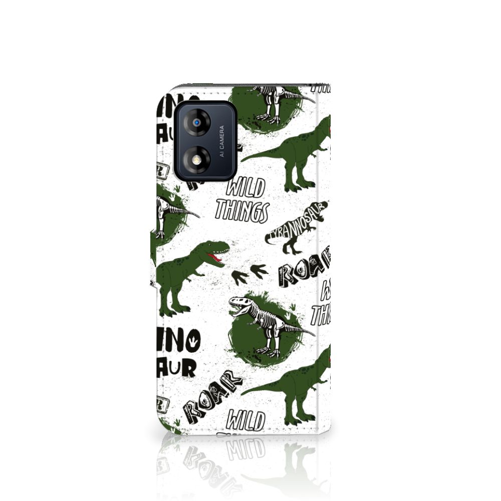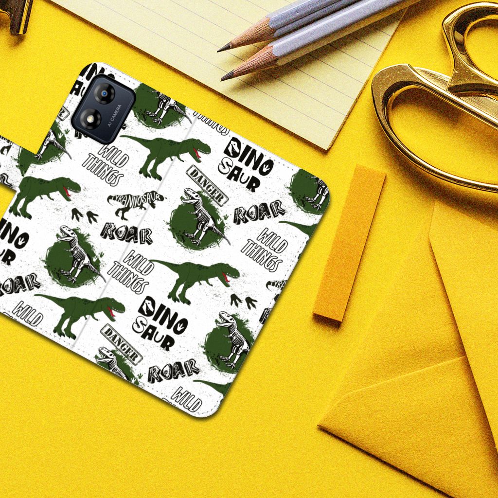 Ook zo gek op alles met dinosaurussen te maken heeft? Dan mag dit hoesje met dino’s zeker niet ontbreken in jouw collectie! De skeletten, pootafdrukken en dino’s zorgen er hopelijk voor dat iedereen van jouw Motorola Moto E13 4G afblijft! Dit toffe dino design wordt geprint op een Telefoonhoesje met Pasjes waarin je drie pasjes kwijt kunt. Het hoesje wordt afgesloten met een sluit lipje, waardoor jouw telefoon altijd goed beschermd is. Bescherm je Motorola Moto E13 4G vandaag nog met dit gevaarlijke Dinosaurus design hoesje!