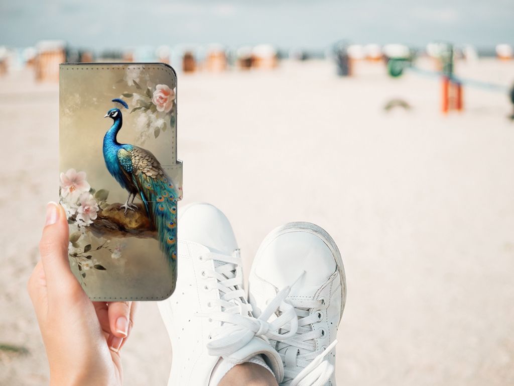 Wist je dat de sleep van pauwen bestaat uit wel 150 kleurige veren? Als de haan zijn sleep opzet om een vrouwtje te veroveren dan zie je deze veren het duidelijkst. Er zijn mensen die geloven dat een pauwenveer geluk brengt! Daarom mag dit romantische vintage pauwen design zeker niet ontbreken in onze collectie. Het blijven toch echt prachtige en fascinerende dieren om te zien! Dit design wordt geprint op een Telefoonhoesje met Pasjes speciaal op maat gemaakt voor de Motorola Moto G13 | G23. In dit hoesje kun je drie pasjes kwijt, super handig toch? Het hoesje wordt afgesloten met een sluit lipje, waardoor jouw telefoon altijd goed beschermd is. Bescherm je Motorola Moto G13 | G23 vandaag nog dit romantische vintage pauwen design hoesje!