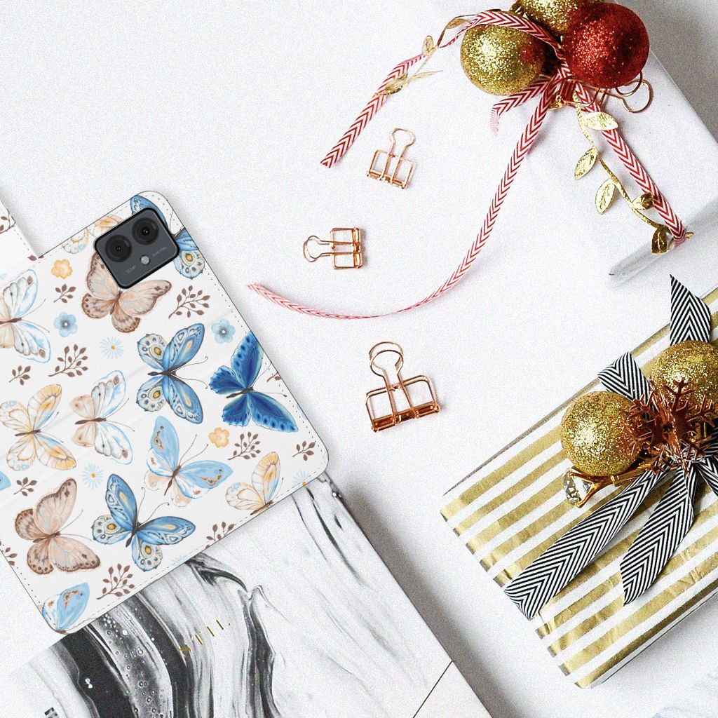 Wist je dat vlinders symbool staan voor geluk, vrijheid en liefde? Veel mensen worden daarom vrolijk als ze een vlinder voorbij zien fladderen. Hoe leuk is het dan om dit vlinder design op jouw Motorola Moto G14 te hebben? Zo word jij zeker vrolijk bij het zien van je telefoon. Dit vlinder design wordt geprint op een Telefoonhoesje met Pasjes waarin je drie pasjes kwijt kunt. Het hoesje wordt afgesloten met een sluit lipje, waardoor jouw telefoon altijd goed beschermd is. Bescherm je Motorola Moto G14 vandaag nog met dit vrolijke vlinder design hoesje!